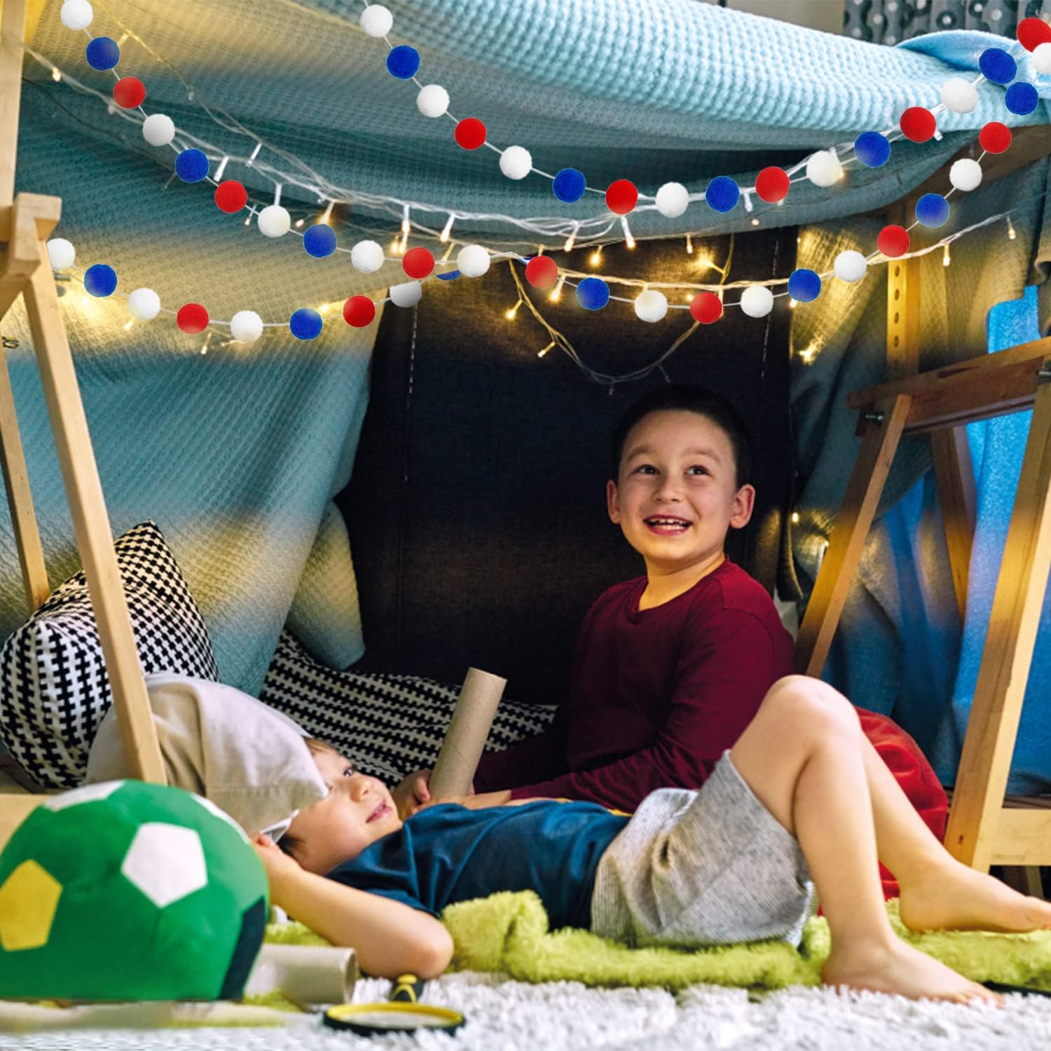 - OCCASIONS: Vintage modern style cute kawaii lovely special design, adding a warm rustic feel. It's easy to hang and can be hung anywhere, perfect funky eclectic decor for home, office, kids playroom, students classroom. Our small little 4th of July Patriotic Red White Blue felt ball ornament garland is a great 4th of July Patriotic, Christmas decorations for indoor home, outdoor yard garden, living room, bedroom, stair railing, fireplace, ceiling, wall, door, window, gift basket, tree, mantle.