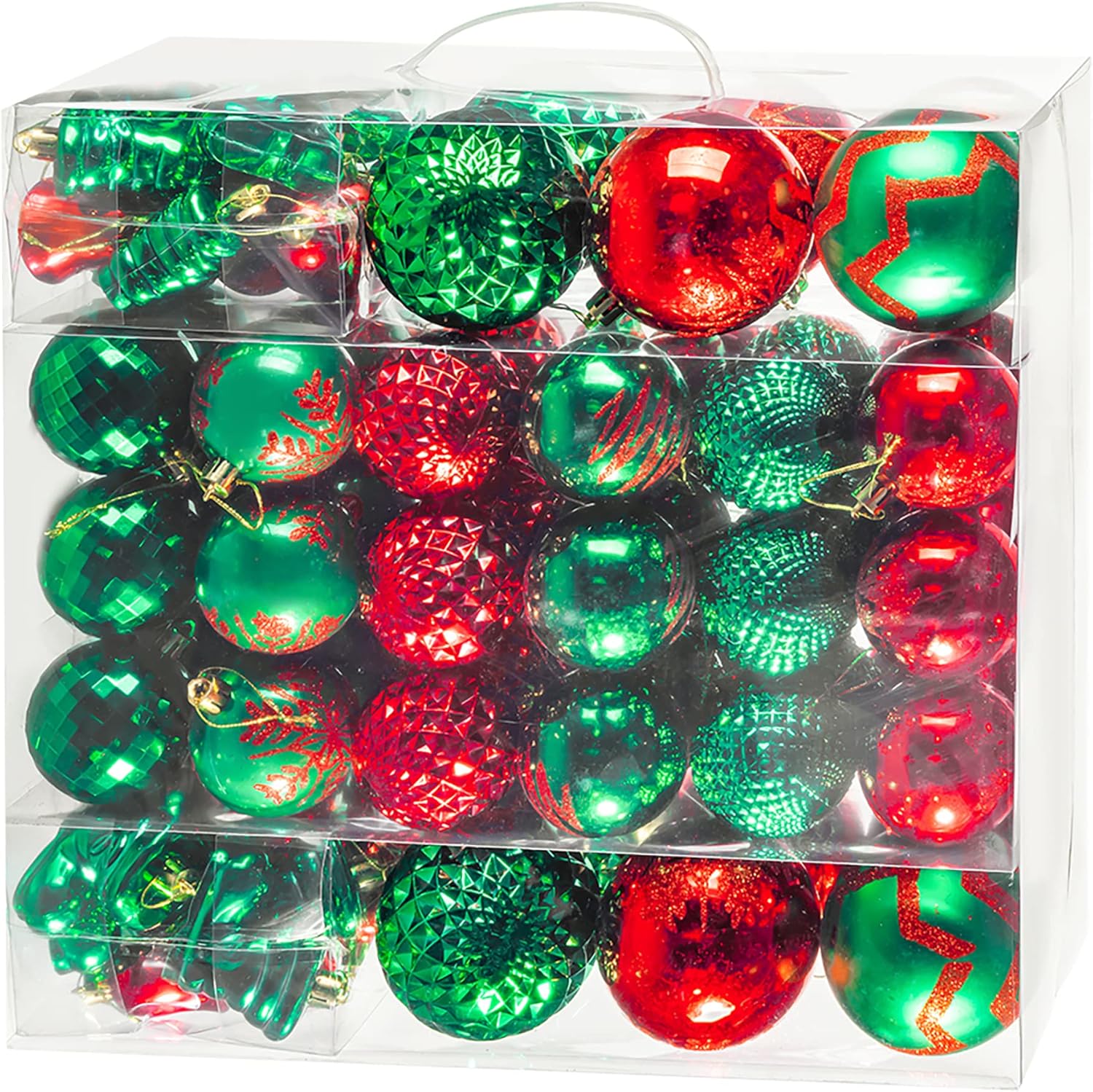 - 【Christmas Ball Ornaments】 This green and red Christmas ornament set contains 116PCS of Christmas balls in 18 styles, includes various shapes, sizes, such as 1.57” / 2.36” / 3.14” Christmas ball, stocking , bell, and gift. It's your call to complete your Christmas decoration with these beautiful balls ornaments set, and make the Christmas season more memorable and unique