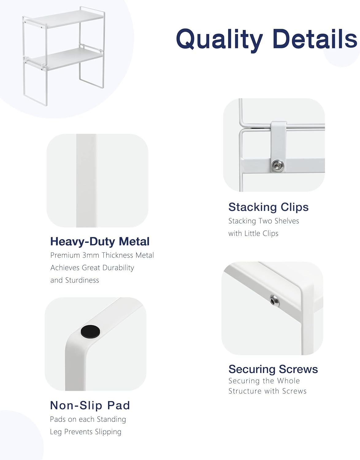 Nxconsu 2Pack Cabinet Shelves Stackable Organizer Rack Riser for Kitchen Cabinet Pantry Cupboard Counter Countertop Home Organization Storage Space Saver Heavy Duty Metal Nonslip White Tall