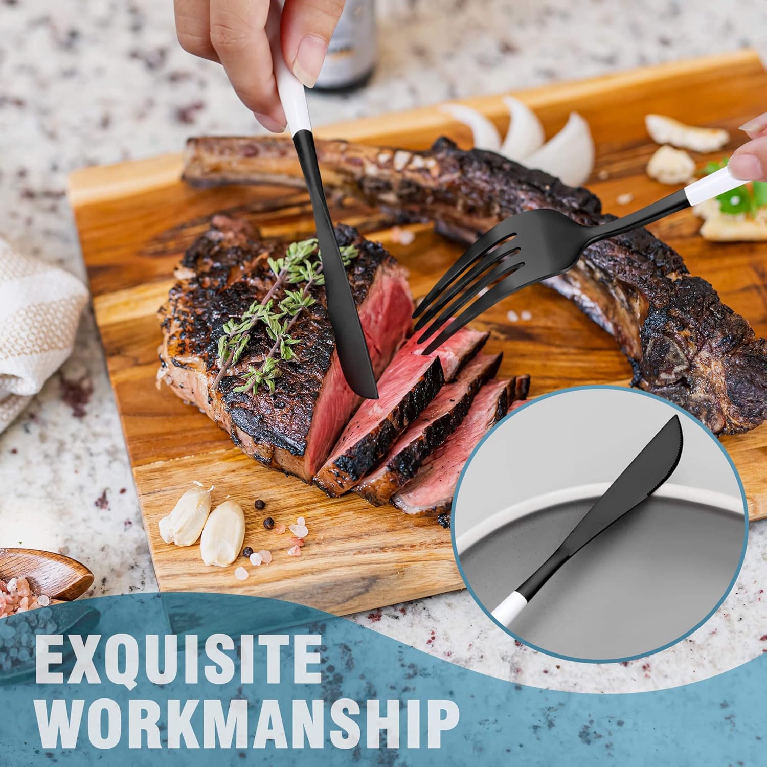Matte Black White Silverware Set for 6,Modern Stainless Steel Brushed Cutlery Set,30-Pieces Heavy Duty Flatware Set,Knives Spoons and Forks Set Utensils Set, Satin Finish, Dishwasher Safe