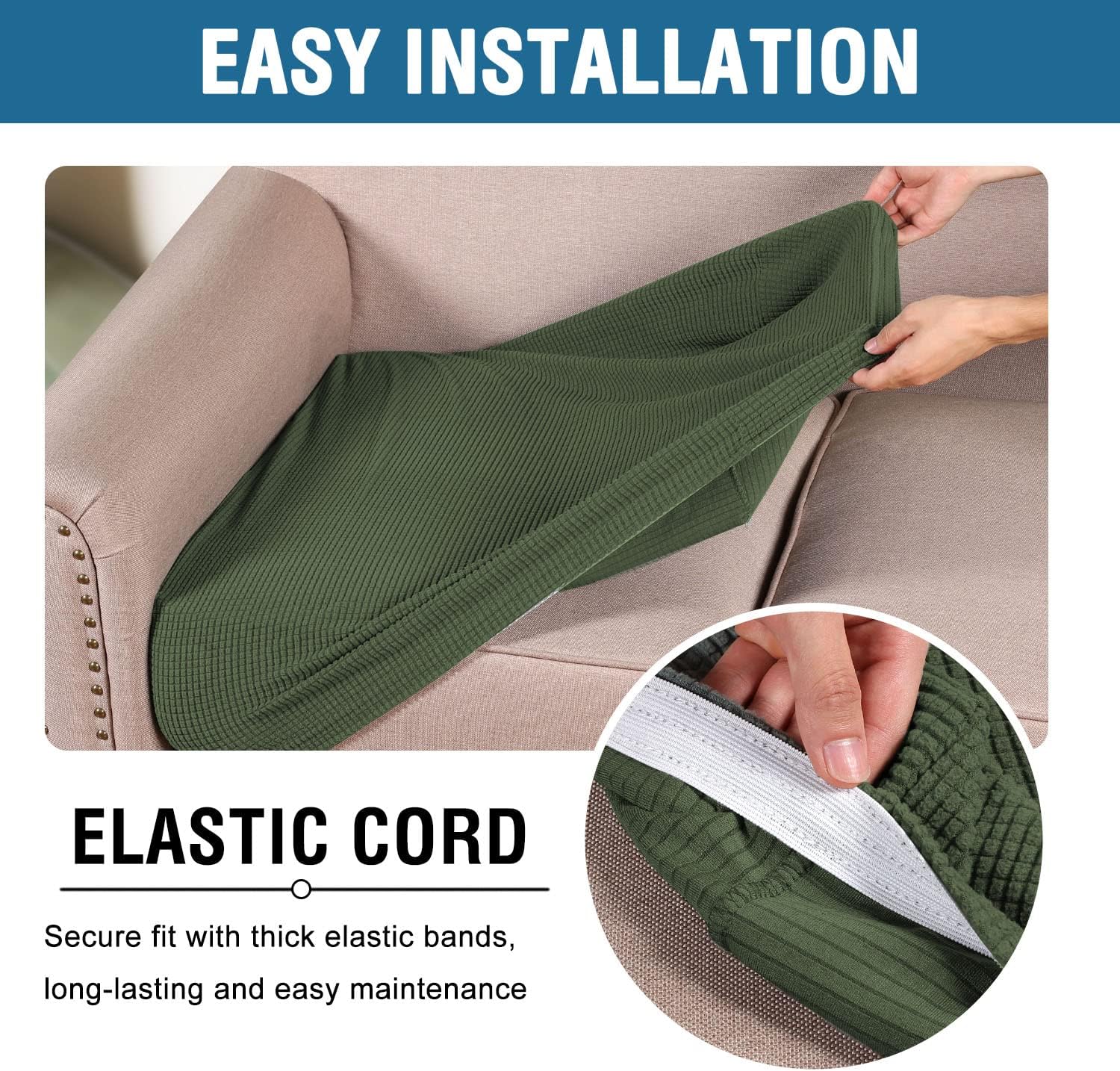 H.VERSAILTEX Super Stretch Individual Seat Cushion Covers Sofa Covers Couch Cushion Covers Slipcover Sets Thick Jacquard Textured Twill Fabric (2 Piece Large Sofa Cushion Covers, Bronze Green)