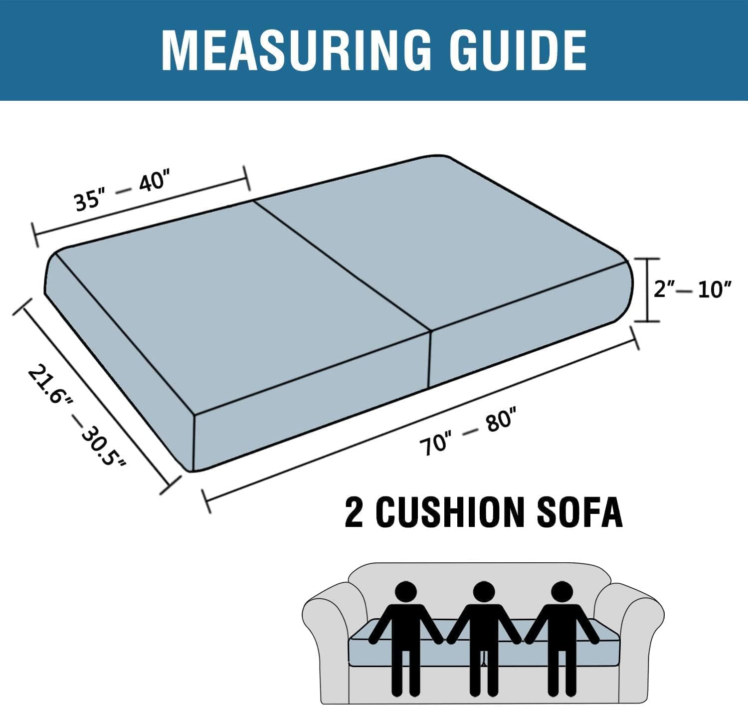 - GREAT FIT: Slipcover Set of 2. This innovated cushion slipcover is crafted from durable and soft high stretch knitted jacquard fabric. Loveseat Seat Cover(fit total sitting area between 70-80 inches). Feature one-size-fits-most, kindly measure before ordering. Suitable for both T cushion and Box cushion styles
