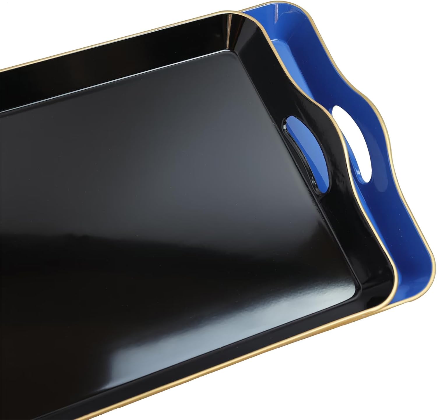 Spsyrine Large Black Serving Tray with Handles, Plastic Decorative Tray for Coffee Table, Ottoman, Bathroom, Home Decor 17.3"*11.8"*2"