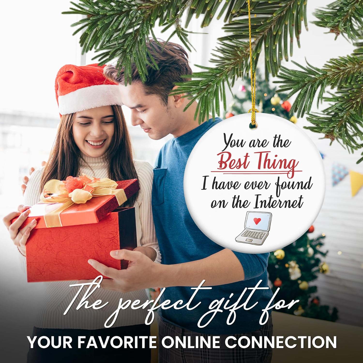 - ANNIVERSARY GIFTS FOR HIM HER - Looking for gifts for him/her this Christmas? With a lovely quote, this ornament is a good choice for your loved one. Ideal birthday anniversary gifts for him, her, boyfriend, girlfriend, husband, and wife. Sweetest online dating Christmas decorations ornament for your lovers.