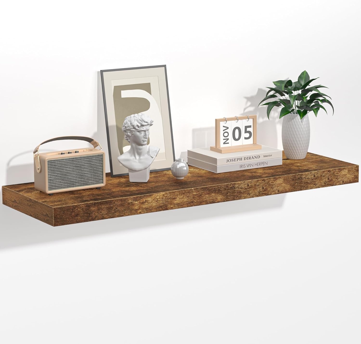 Floating Shelves - 10.3 Inch Deep Wall Shelf for Decor & Storage - Wall Mounted Display Shelving with Invisible Heavy-Duty Metal Bracket - 36" W x 10.3" D x 1.8" H - Set of 1 - Rustic Brown