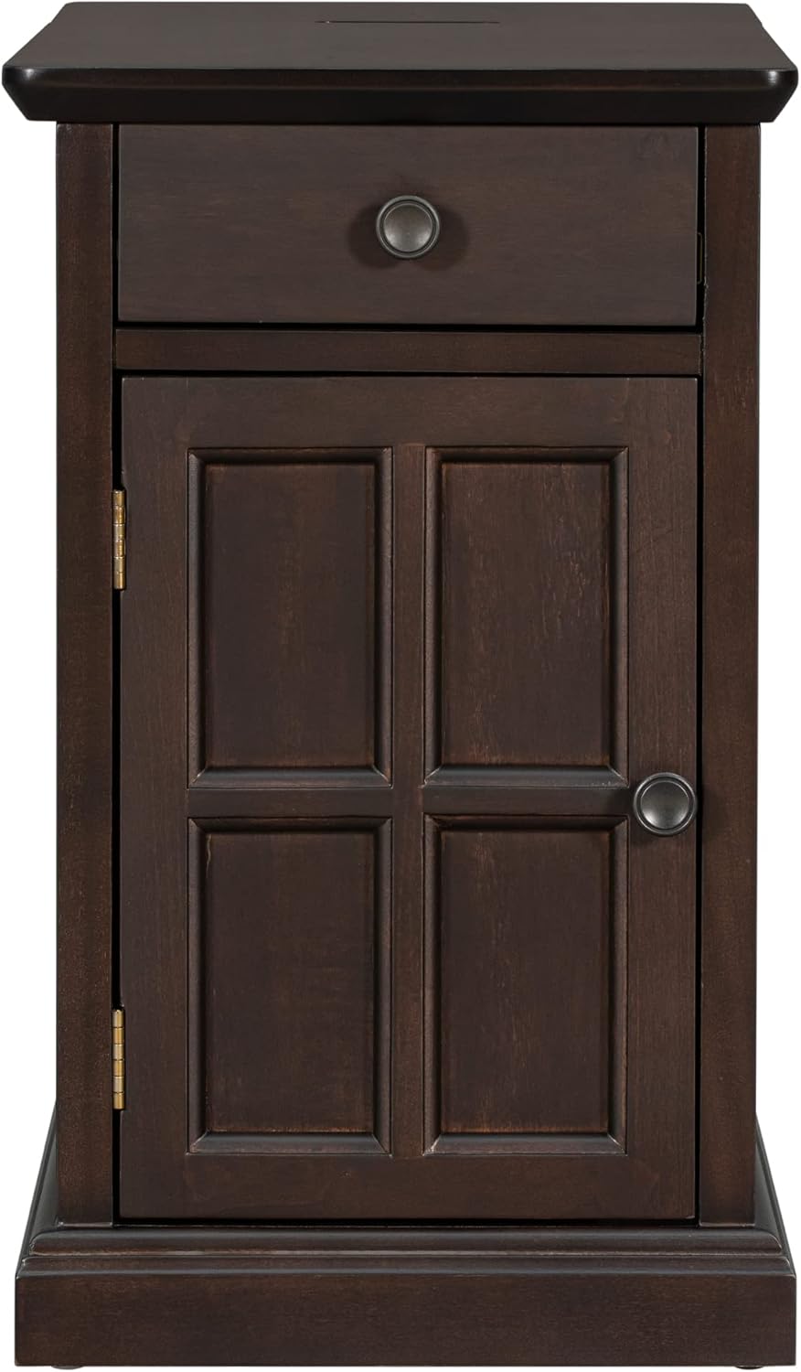 Traditional Wood End Table with Charging Station, Modern Vintage Sofa Chair Side Table Nightstand with Storage & Drawer for Living Room Bedroom, No Assembly, Antique Espresso