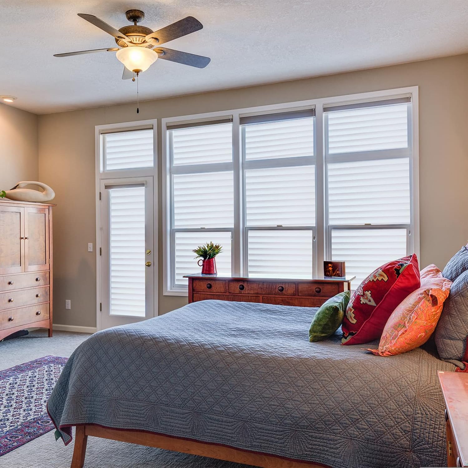 - [Window film privacy day and night]; Frosted window privacy film is used for glass windows, which can block prying eyes and dog barking, can effectively block unwanted sight from the outside, ensure that your private space is well protected, while still allowing soft natural light to enter, vinyl window film simple decoration makes life easier and better, glass doors, bathrooms, bathroom windows, home, kitchen, french doors, front door side windows, living room, meeting room, office, living room, house, patio door, bedroom, etc., window privacy screen, sliding door, Create a more comfortable living space for you and your family.