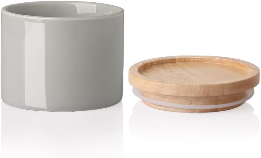 Sweejar Kitchen Canisters Ceramic Food Storage Jar, Stackable Containers with Airtight Seal Wooden Lid for Serving Ground Coffee, Tea, Sugar, Spice and More - 5 Fl Oz(Gray)