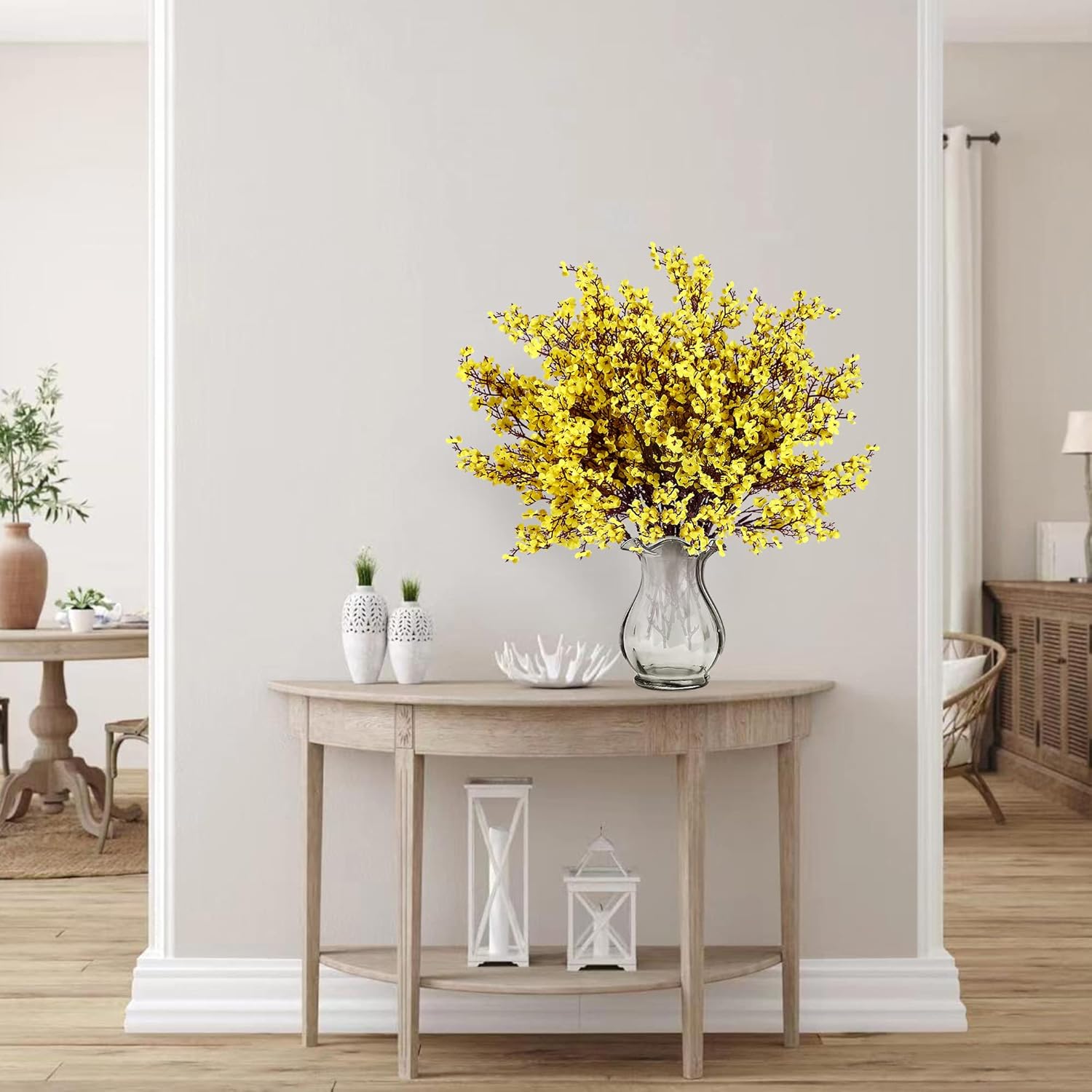Sggvecsy 15 Pcs Babys Breath Artificial Flowers Gypsophila Bouquets Bulk Real Touch Fake Silk Flowers for Home Wedding DIY Floral Arrangement Kitchen Table Centerpiece Festival Decoration (Yellow)