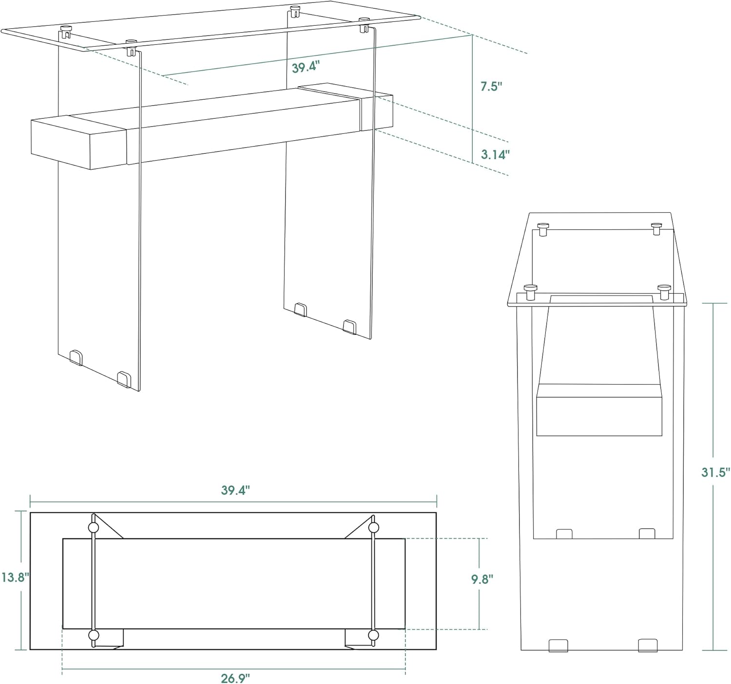 - Product Dimensions : 13.8"D x 39.4"W x 31.5"H