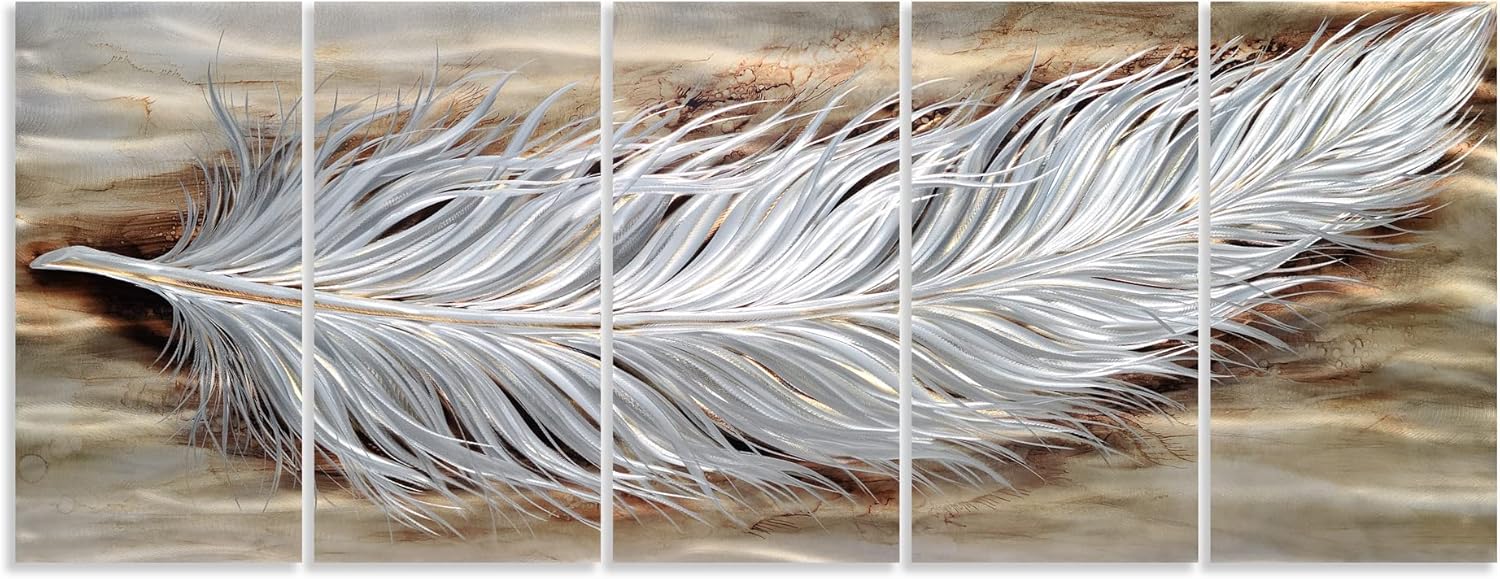 - Rustic Feather Metal Wall Art: 24x12INx5 Panels (24x64IN, 60x150CM)