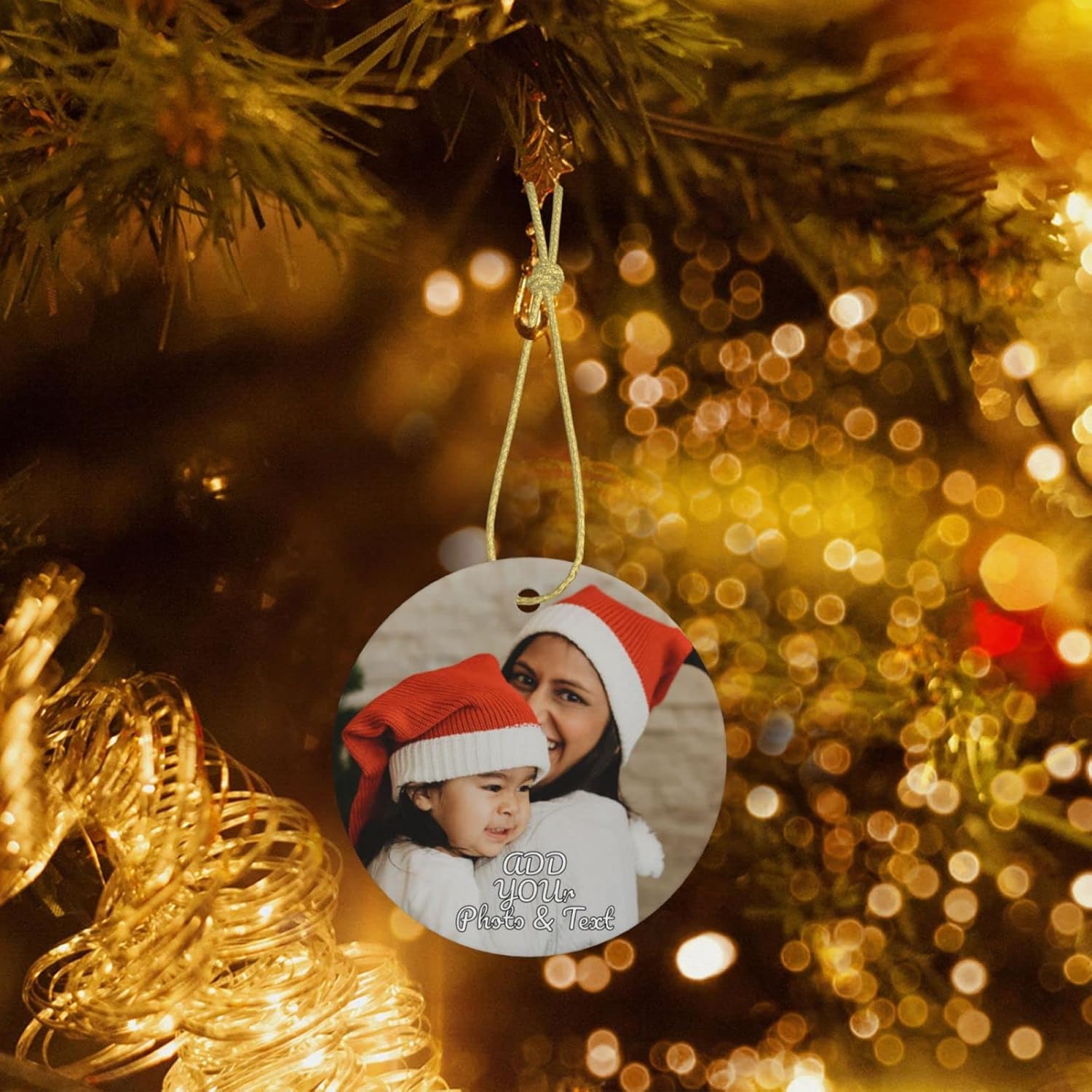 - 📷 CUSTOM PHOTO ORNAMENT & KEEPSAKE - Click on the " Customize Now " button, Upload your favorite photo and we will turn your happiest memories into a customized Christmas Ornaments. Make a one of a kind gift with photos, names and quotes of you and the one you love.