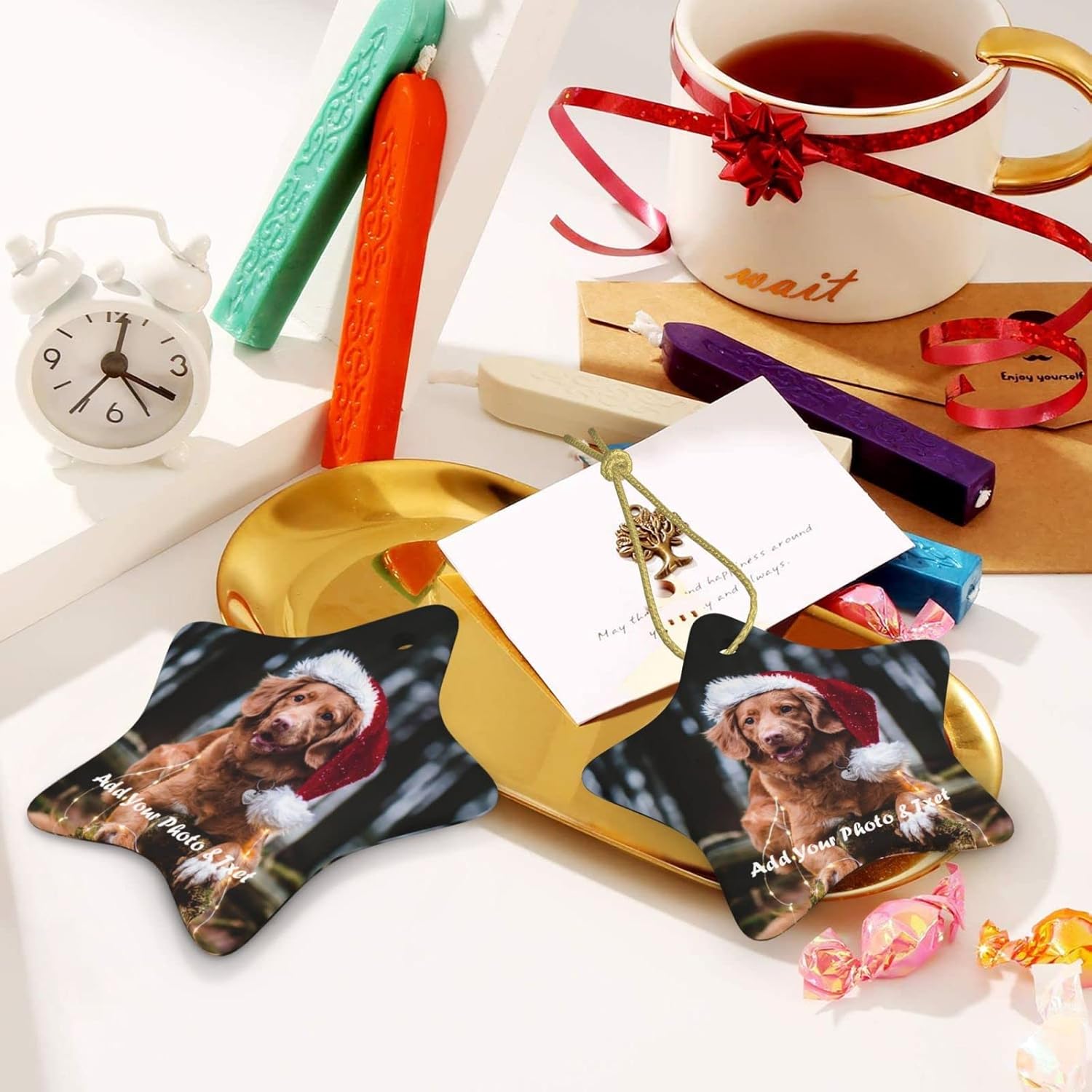 Personalized Ceramic Christmas Tree Photo Ornament - Customized Wedding, Baby, Family, Pet Picture - Unique Xmas Gift (Pentagram - 2pcs)