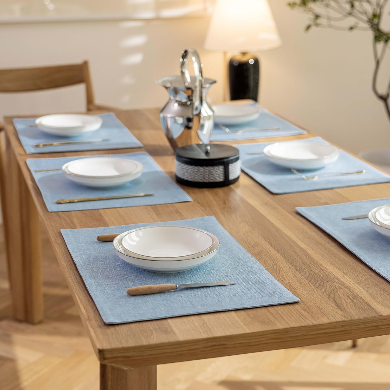 Demetex Blue Placemats Set of 6 Heat Resistant Farmhouse Burlap Placemats Washable Cloth Place Mat Dining Table Plate Mats for Kitchen Table Decor, Blue