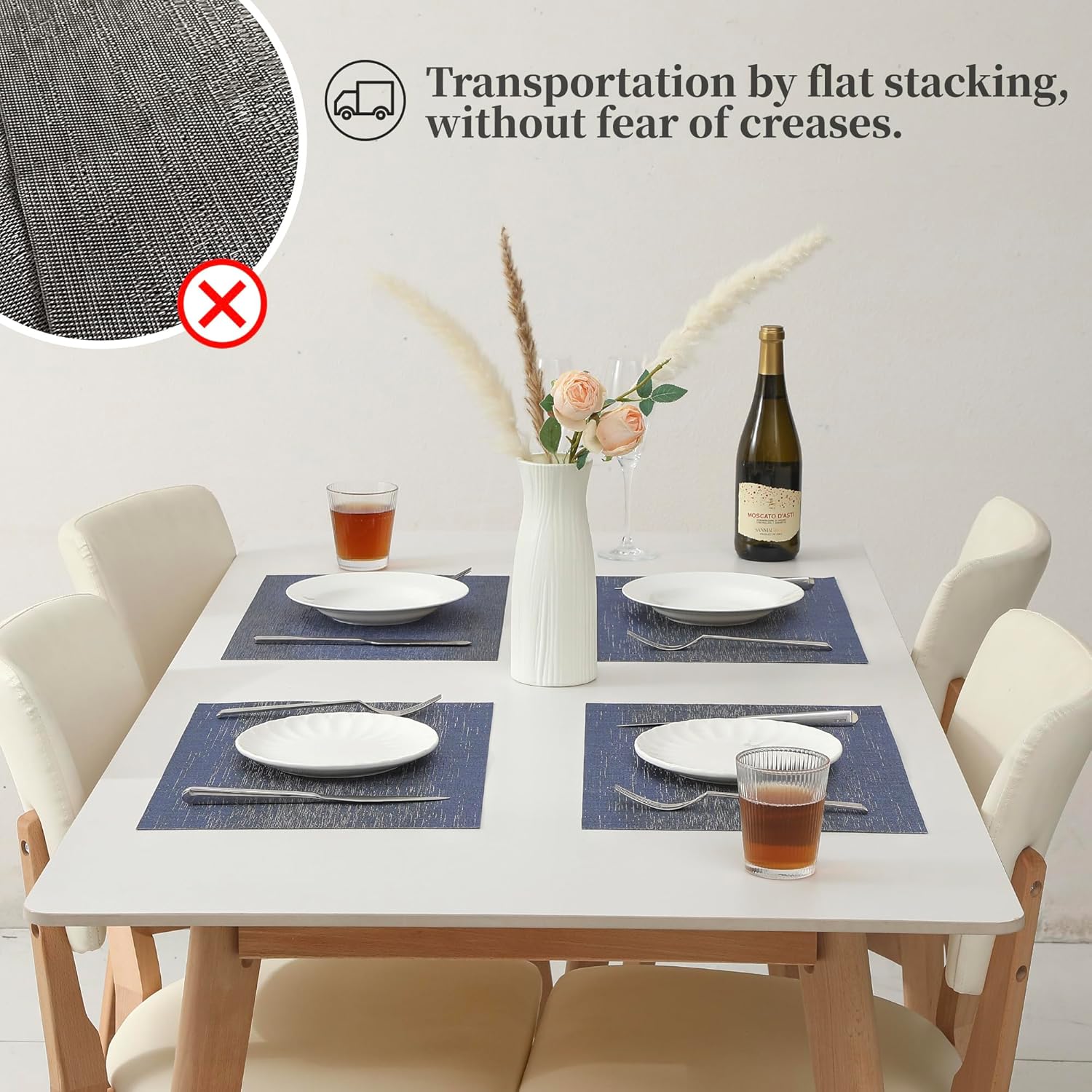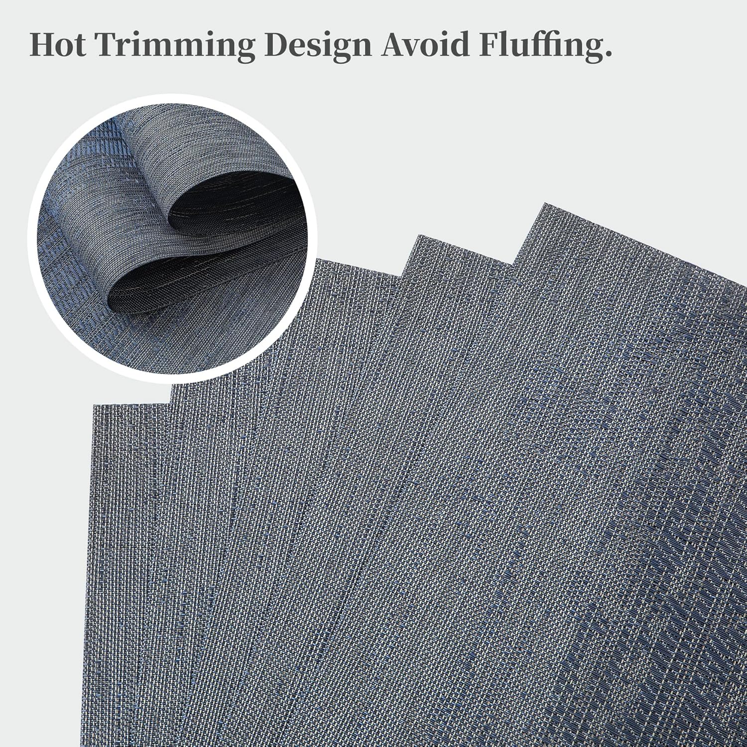 Leetaltree Denim Blue Placemats Set of 6 - Heat Resistant Non-Slip Place mats for Dining Table, Washable Durable PVC Vinyl Woven Table Mats(Denim Blue, 6)