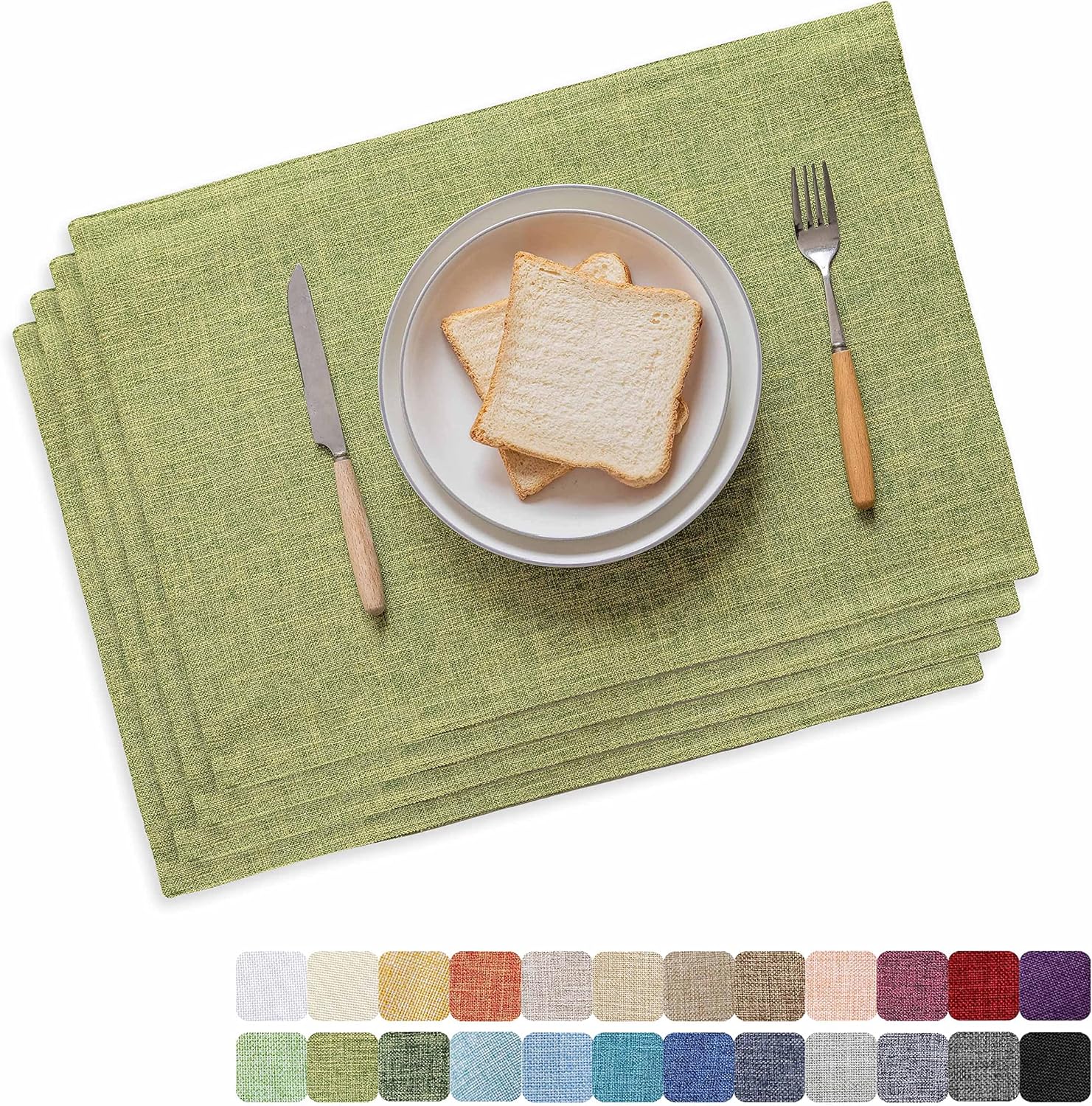 Home Brilliant Green Placemats Set of 4 Washable Place Mats Linen Placemats Heat Resistant Table Mats for Wooden Table Indoor Outdoor Decor, Lime Green