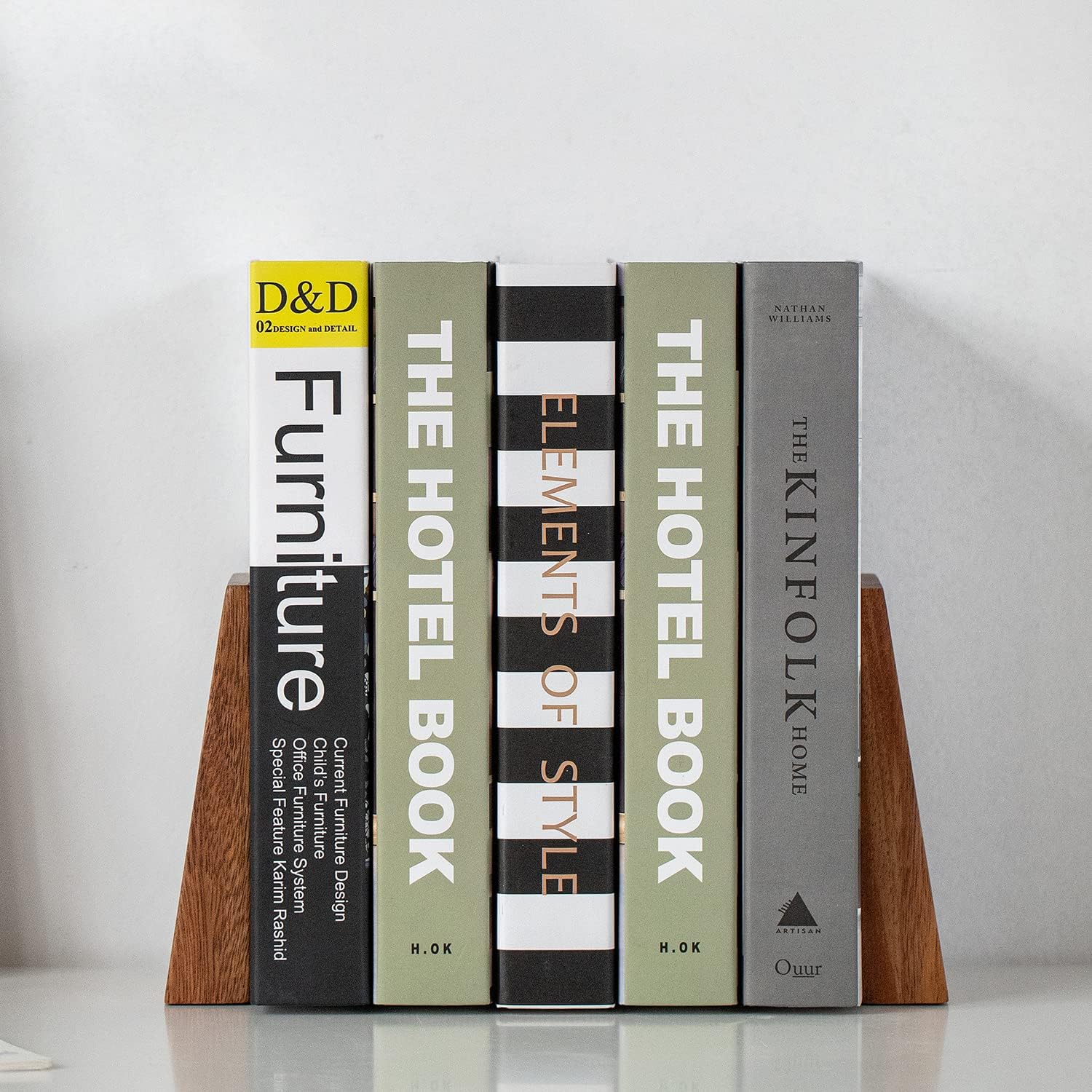 Muso Wood Book Ends, Thickened Wooden Bookends for Heavy Books, Creative Decorative Bookends for Shelves, Non-Skid Book Ends, Handmade Acacia Wood Bookends