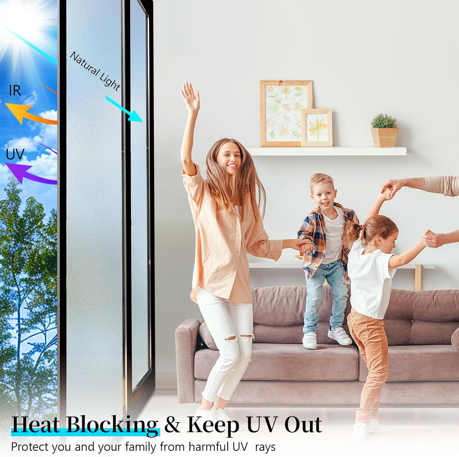 - Frosted window film for windows, more than 96% UV protection, heat insulation in the summer and heat preservation in the winter. While provides a maximum level of window privacy