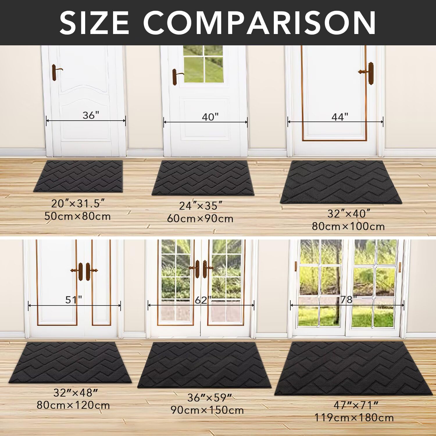 hicorfe Front Door Mat Outside Entrance,32"x40" Absorbent Muddy Dirt Resist Welcome Door Mats Outdoor Indoor,Stain and Fade Resistant,Non Slip Backing Entry Mat Doormat for Entryway(Charcoal)
