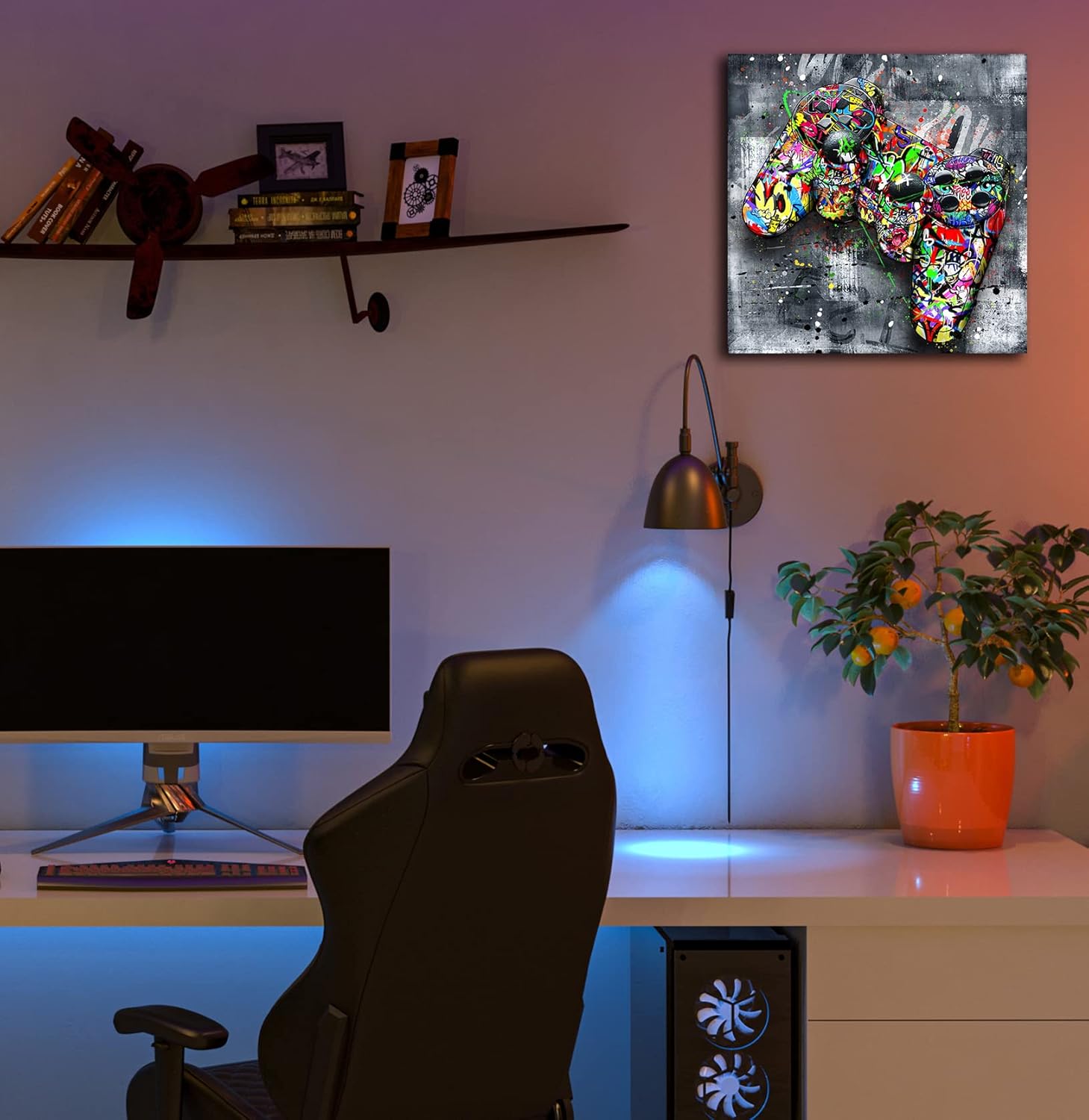 - 【CANVAS WALL ART SIZE】 Size is 14" x 14" Graffiti canvas wall art gaming wall art for teen boys abstract painting pop art modern home wall decor