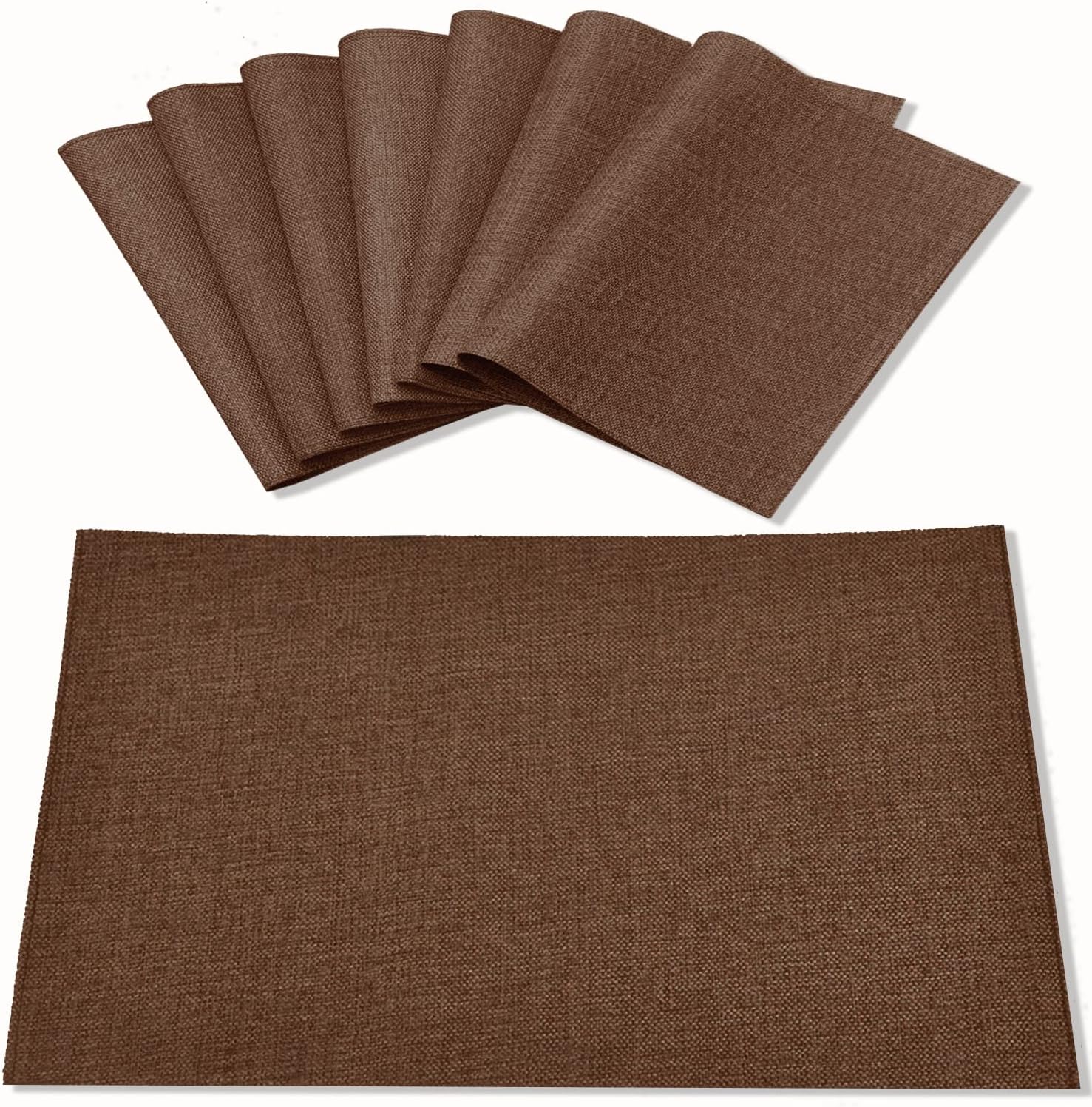 Cloth Placemats Set of 8, Linen Type Fabric Placemats Machine Washable Heat Resistant Placemats Wrinkle Free Thick Polyester Kitchen Place Mats for Dining Table (Dark Brown)