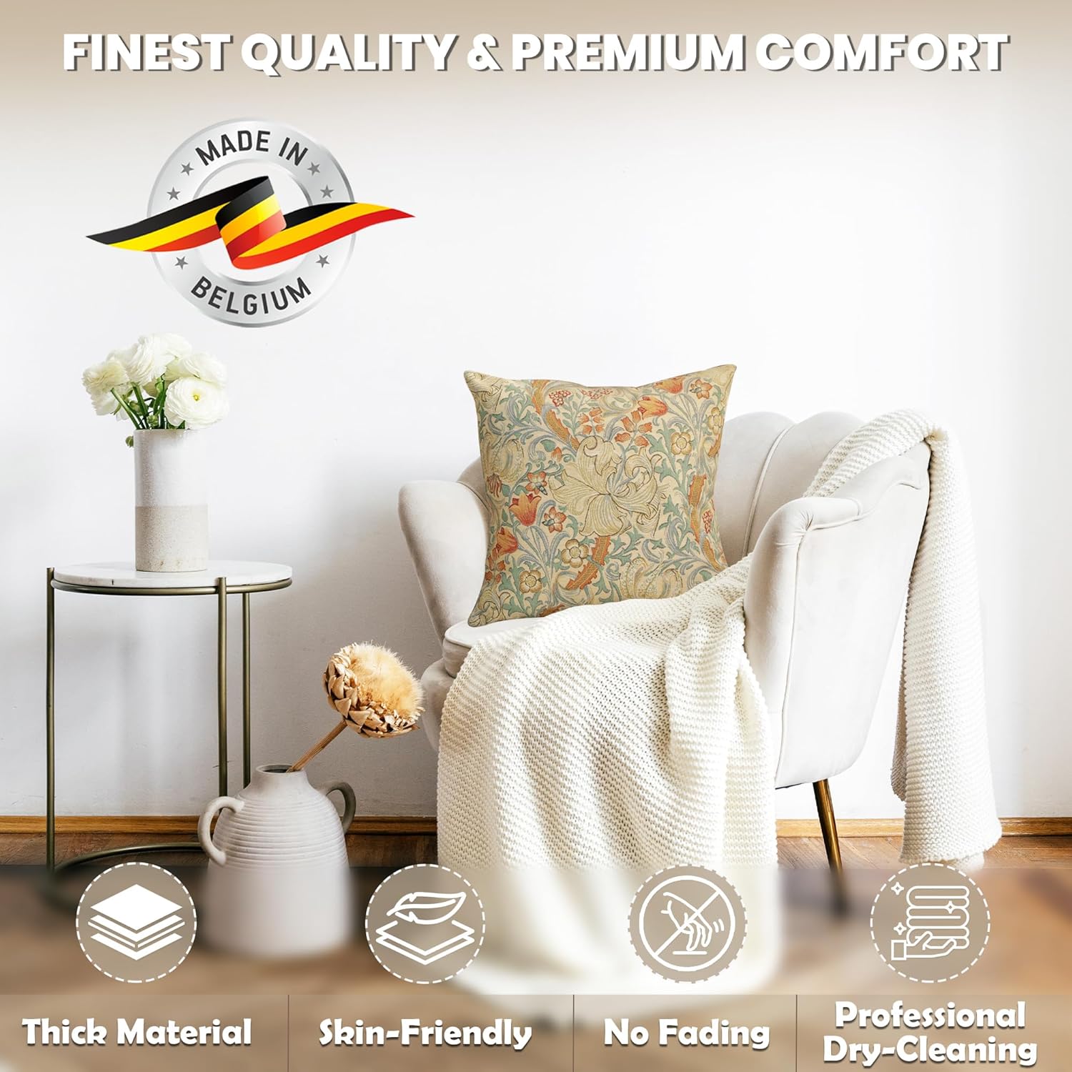 - Exclusive Design Excellence: The decorative pillow covers are made of high-quality jacquard woven fabric, 100% cotton for extreme comfort and durability. The designs of these William Morris pillow covers are woven with precision using the most vibrant colors. The zippers are hidden and overlock stitch seams create an appearance of sophistication while providing durability for any home decor