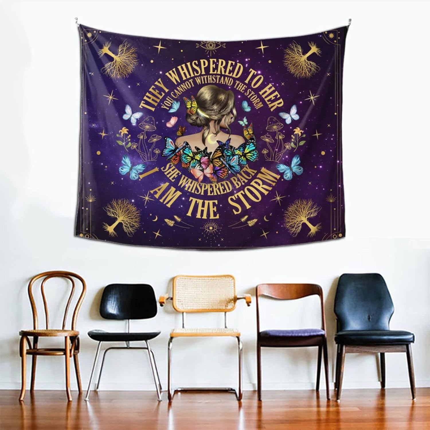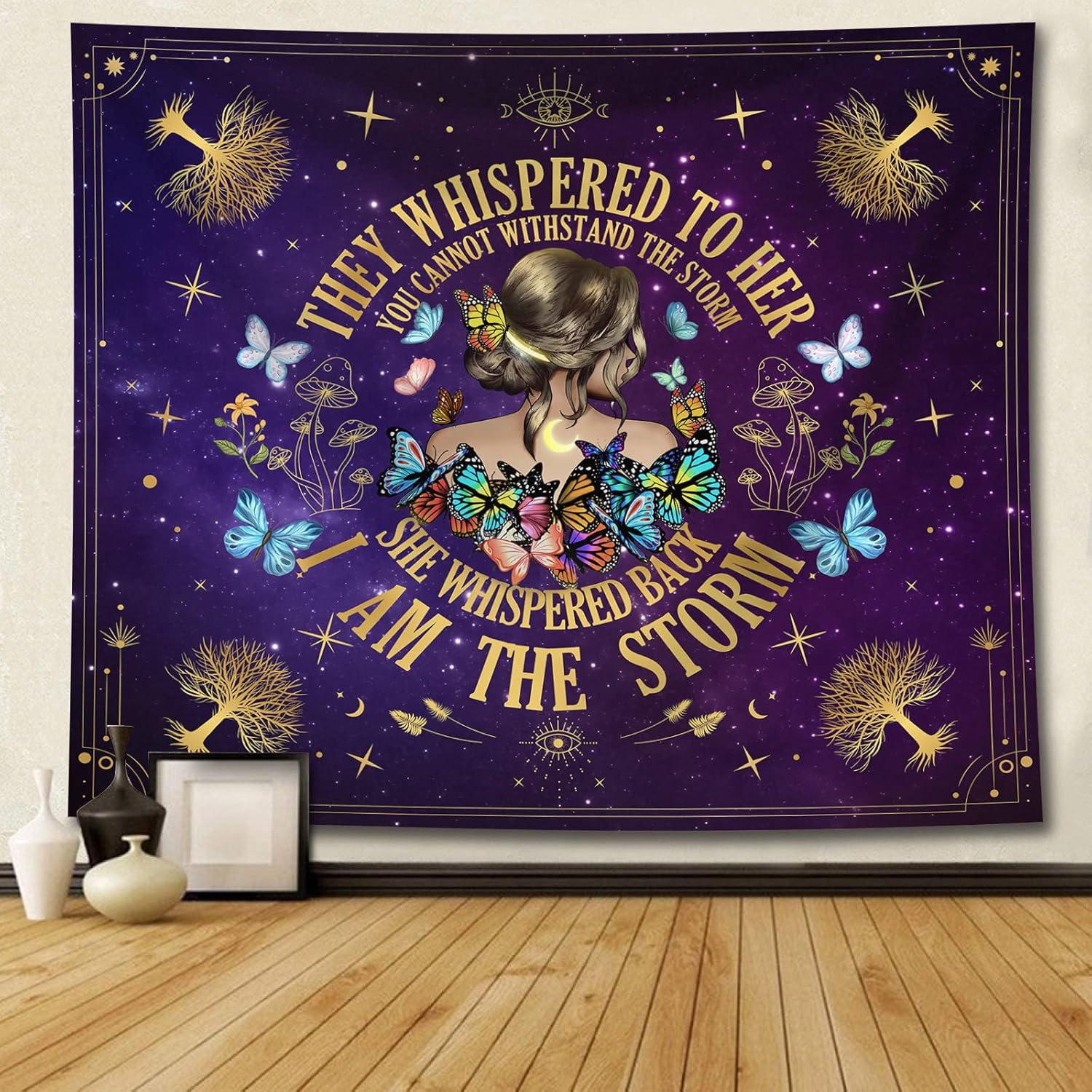 Inspirational Quote Tapestry,They Whispered to Her You Cannot Withstand The Storm Positive Motivational Uplifting Encouragement Gifts Wall Decor for Bedroom,Inspirational Gift for Women Teens Girls