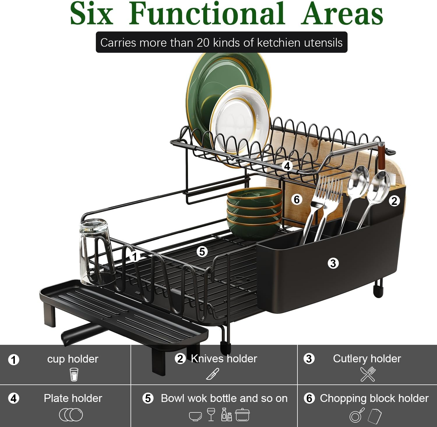 - 【2-in-1 Detachable Combination Design】The dish drying rack adopts a 2-in-1 detachable combination design, which can be used as a sink drainer and kitchen counter drainer, or combined as a 2-tier drainer.