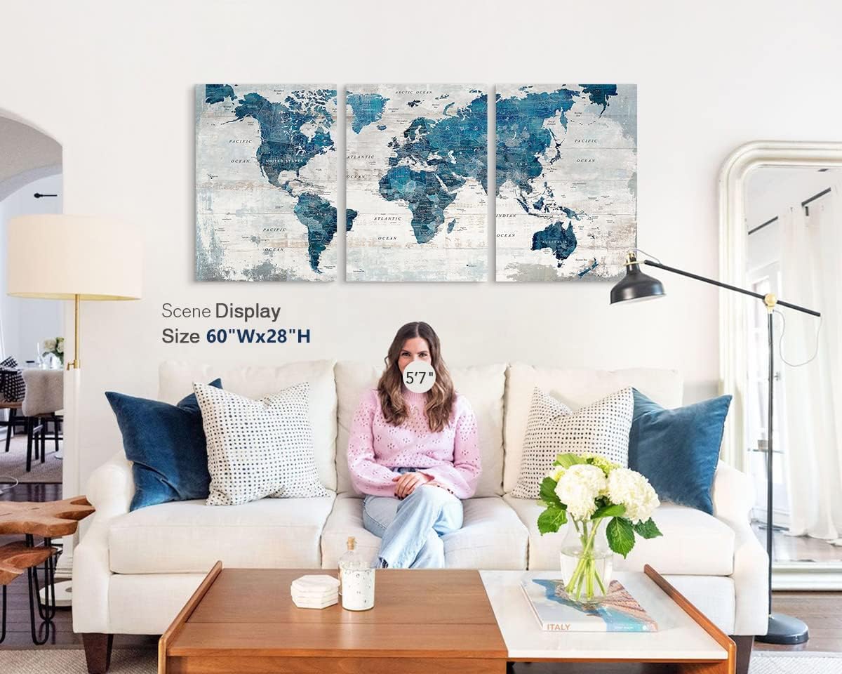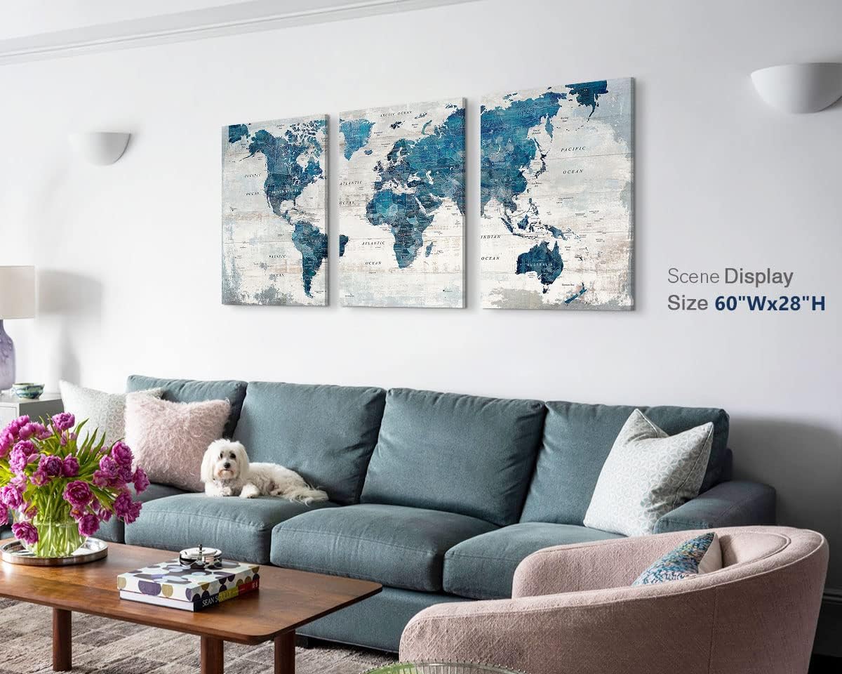 - DECORATIVE MAP - Professionally printed works of art on quality canvas. Each panel is 20" by 28", set of 3, the overall size is 60" x 28"