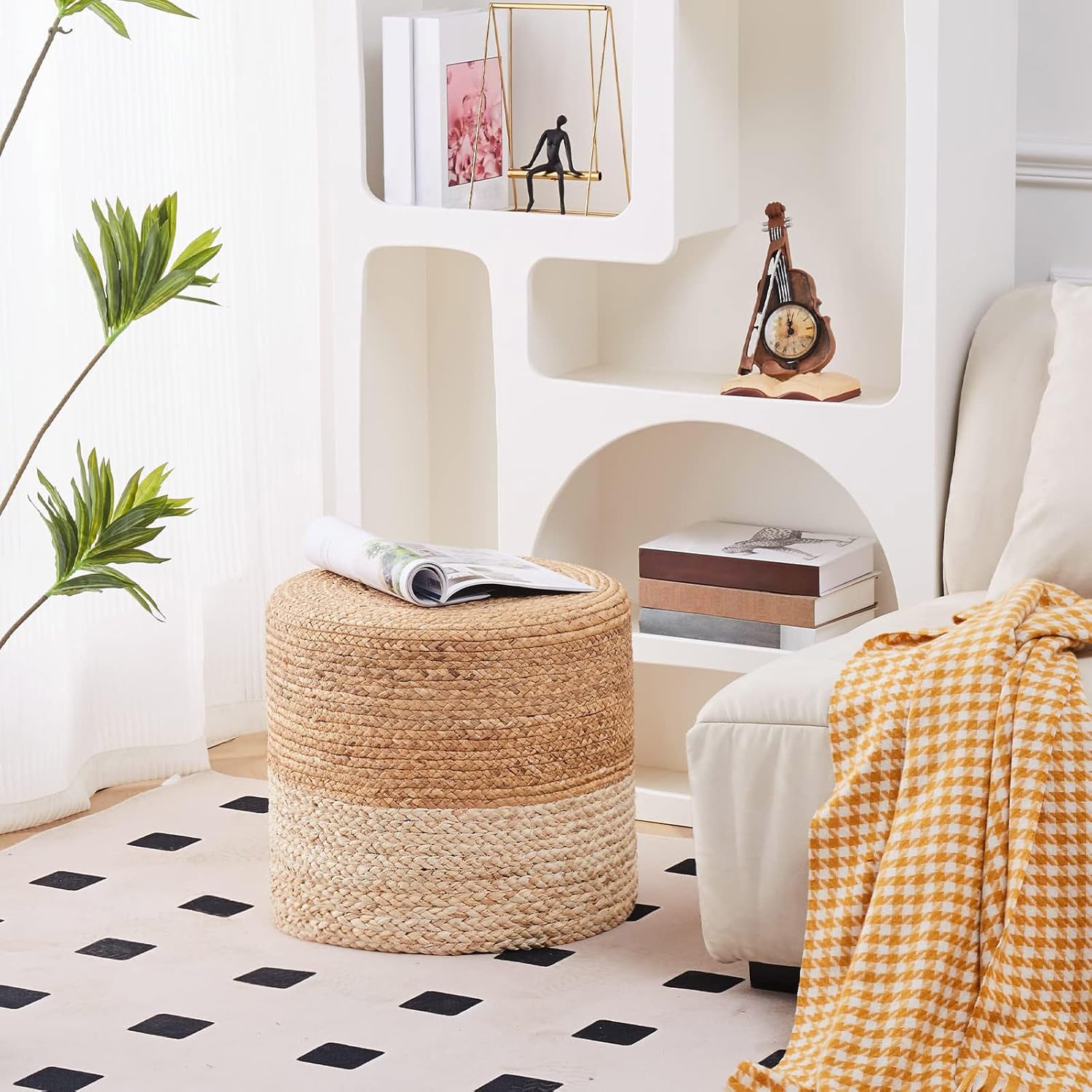 - 100% Handmade Shell of Pouf Ottoman: Beautifully handwoven of thick, sustainable, and durable Natural Cattail. Its lightweight to move yet sturdy and comfortable