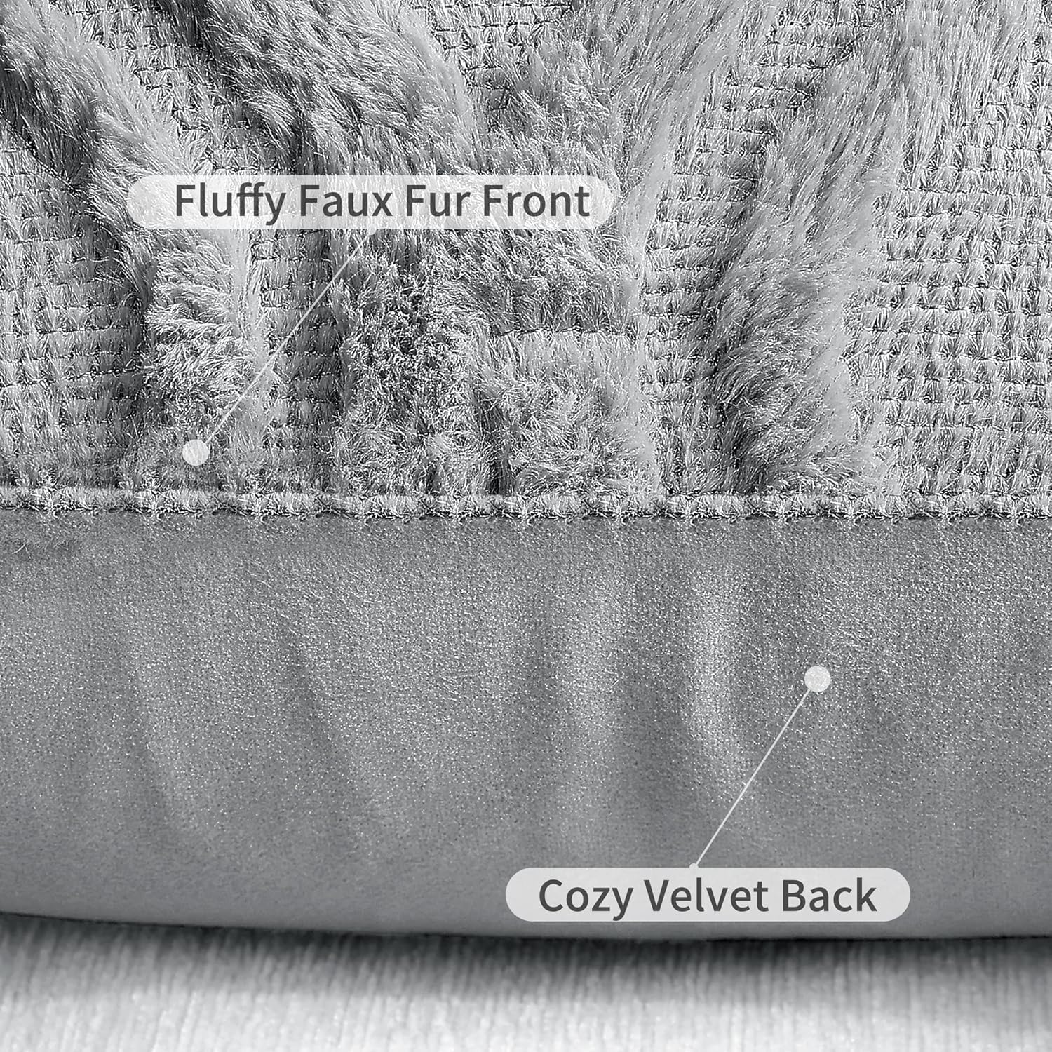 decorUhome Fall Throw Pillow Covers 24x24 Inch Set of 2, Soft Plush Decorative Faux Fur Grey Solid Couch Pillow Covers, Accent Farmhouse Neutral Square Euro Pillow Cases for Sofa Bed Living Room