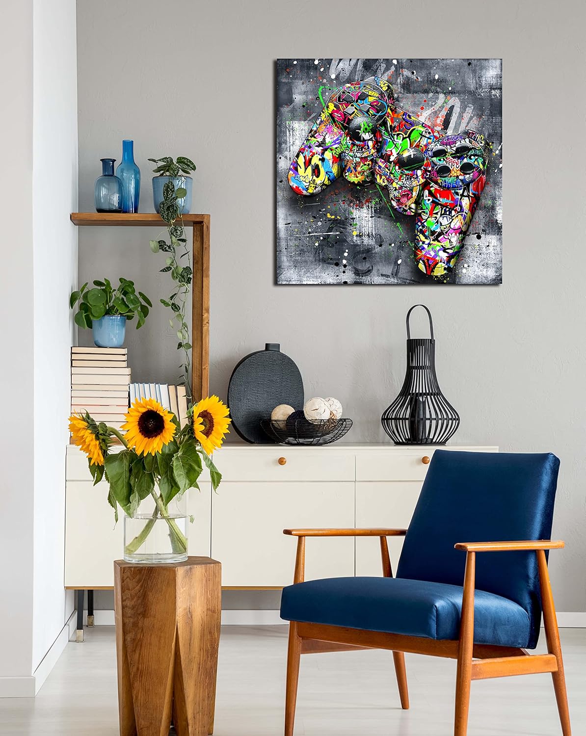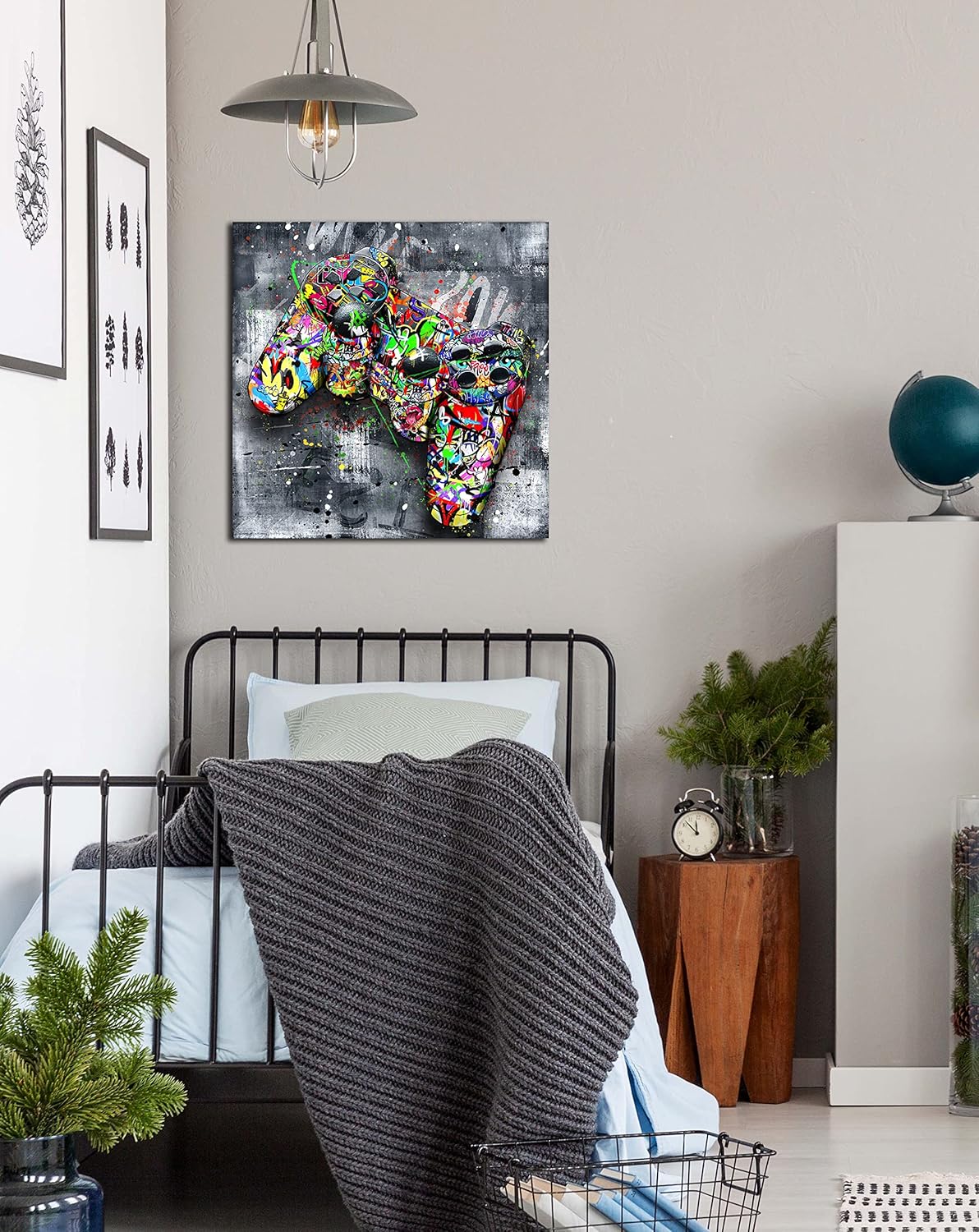 - 【CANVAS WALL ART SIZE】 Size is 30" x 30" Graffiti gaming wall art for living room large size room decor for teen boys abstract canvas wall art