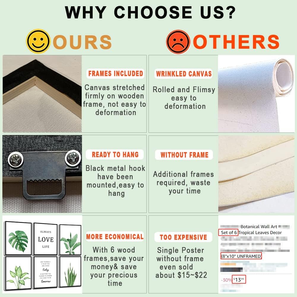 - 【Buy with Confidence】Each bathroom pictures wall decor sets measures: 8 x 10inch, Set of 6. If you have any questions about the botanical wall art framed just contact us freely, we are always here for you.