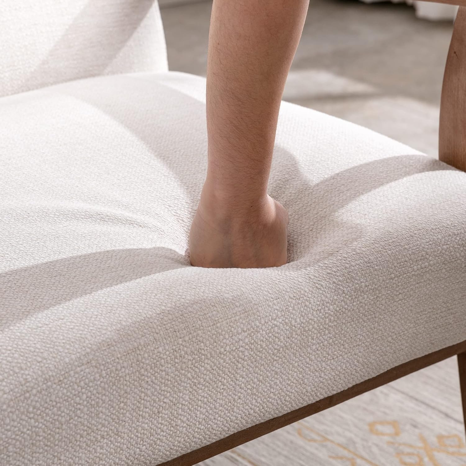 Mid Century Modern Accent Chair Set of 2, Linen Upholstered Living Room Accent Armchair with Wood Frame, Farmhouse Chair for Living Room Bedroom, Ivory