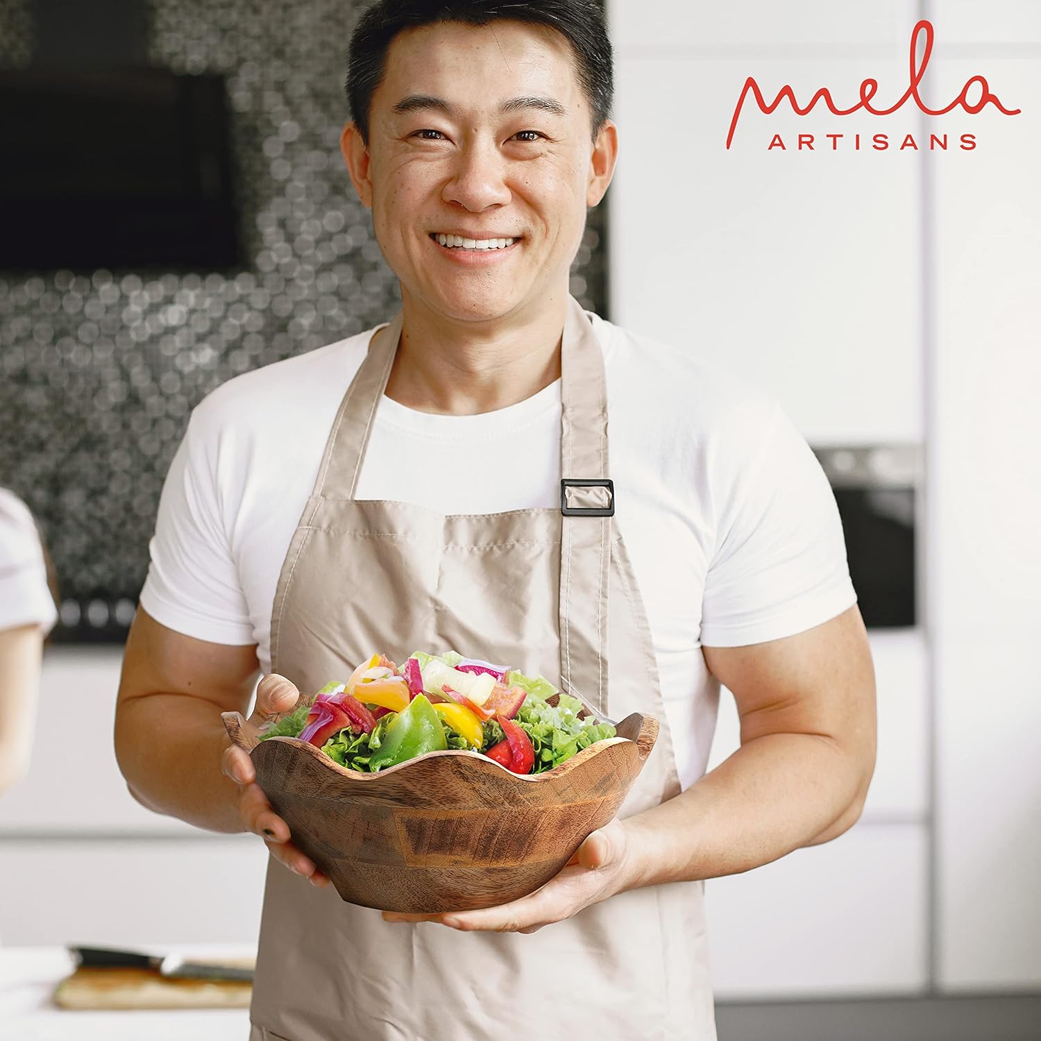 Mela Artisans Wooden Scalloped Bowl - Medium | Ruffle Decorative Style | Rustic Kitchen Decor | Mango Wood | Natural Grain Finish | Fits Bread, Fruits, Salad or Popcorn | 10” x 4” x 9”