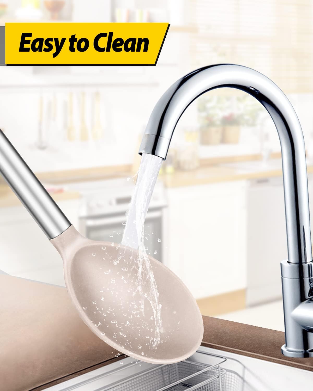 - Thoughtful Design : The good-quality 18/8 stainless steel keeps you away from the trouble of kitchen utensils rusting or breaking; This anti-scald silicone handle is not easy to conduct heat and is more comfortable to hold than traditional utensils