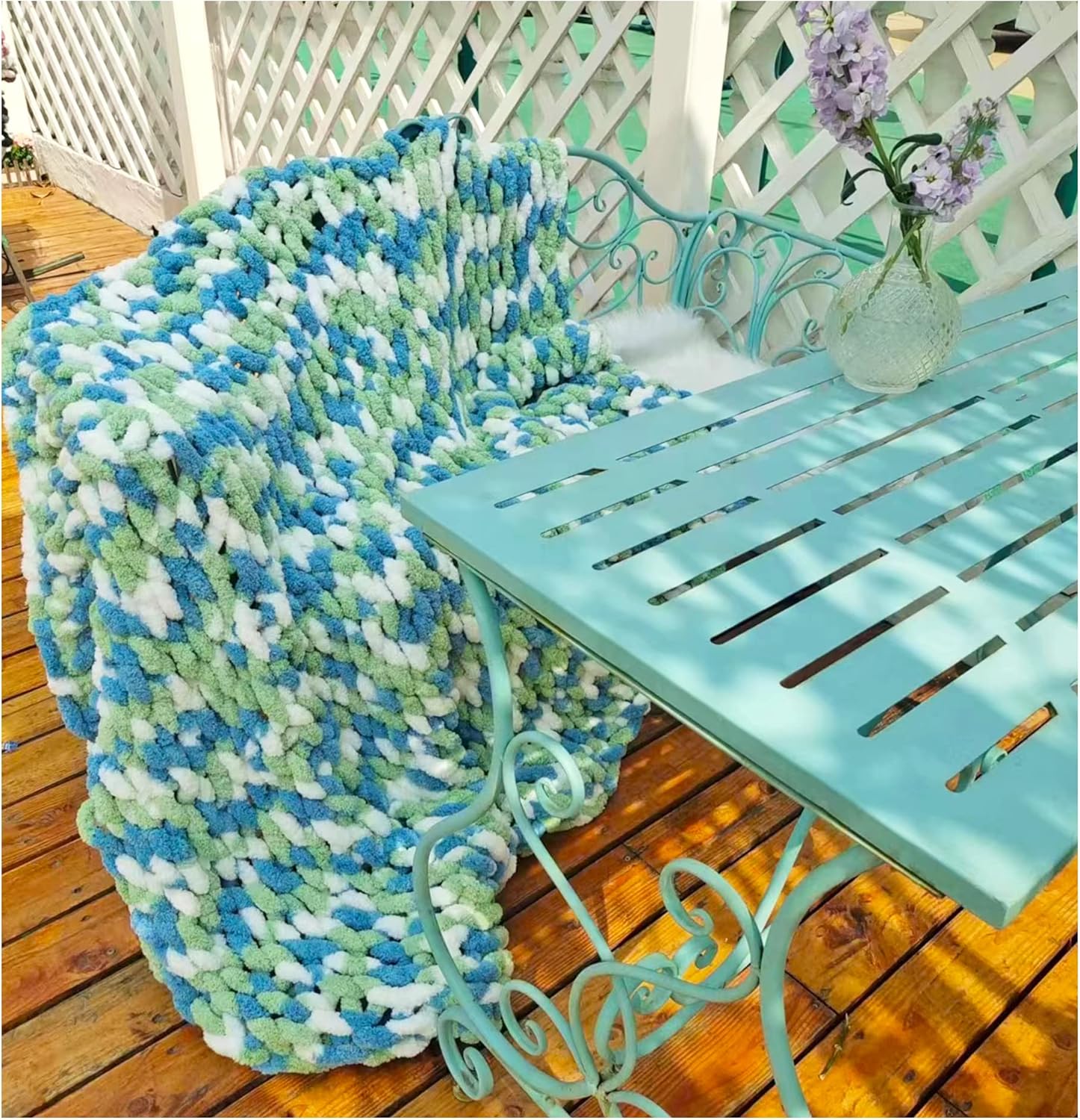 DDL&HEXI Chunky Chenille Blanket 100% Hand Knit with Jumbo Chenille Yarn (50"x60") Super Soft Large Throw Bed Blanket for Couch, Sofa, Home Decor - Machine Washable (01)