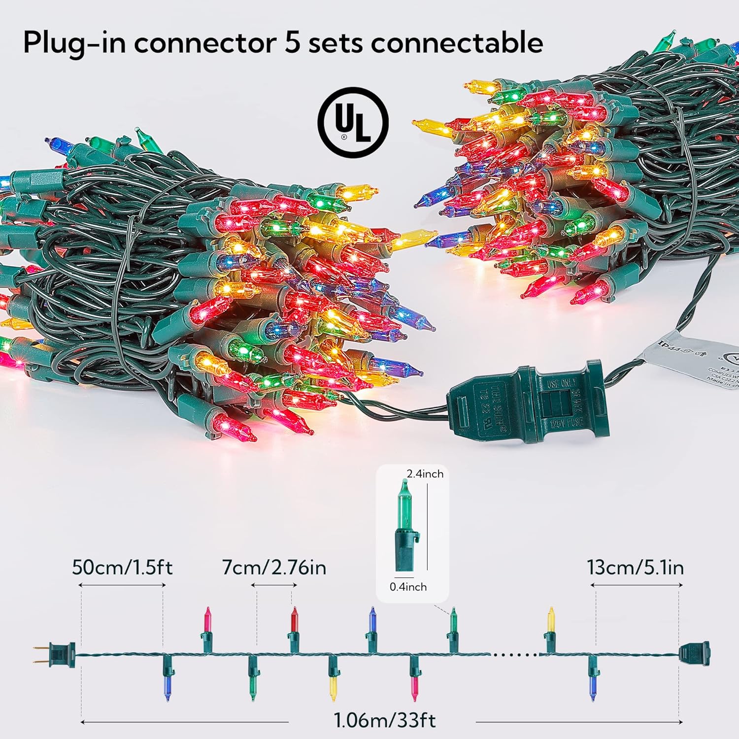 - 🎄Easy to Connectable :Equipped with a male and female plug, you can easily connect up 5 strands end-to-end to reach a length of 115 feet. Then decorate your lighting area with any required length.Meet your application needs in various scene.These string lights can easily customized and create romantic atmosphere.