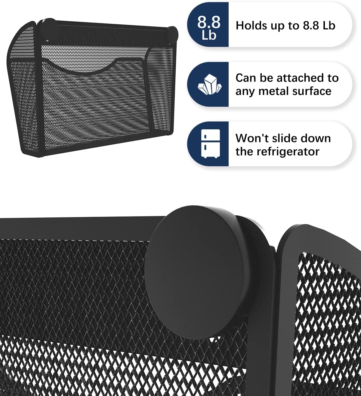 - MAGNETIC SUCTION FUNCTION - The magnetic file holder has 2 super strong magnets on the back, which is very easy to use and can be attached to file cabinets, refrigerators, and whiteboards without drilling. Also the magnetic file holder can hold up to 8.8 pounds, so you don't have to worry about it falling off