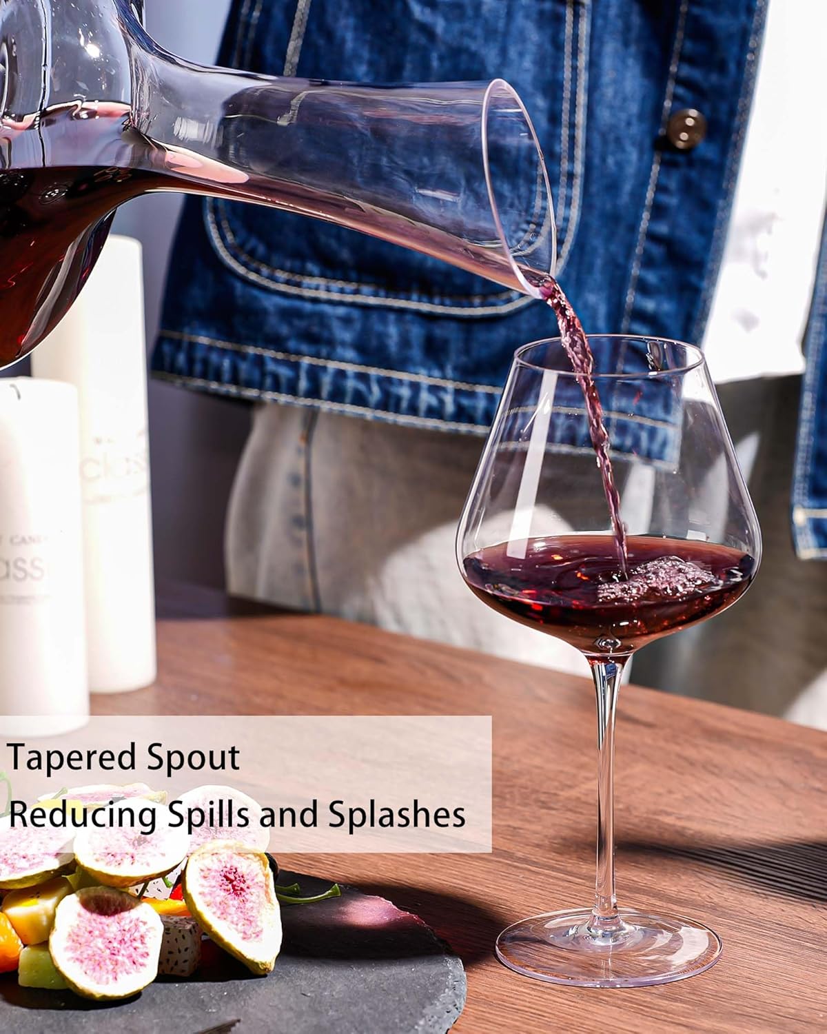 - Holds a Full Wine Bottle: Our traditional wide-base decanter holds a full wine bottle, enhancing aeration. The design allows easy pouring and swirling, improving wine aroma. Sediment settles in the base, ensuring clarity. Taste the difference in just 30 minutes