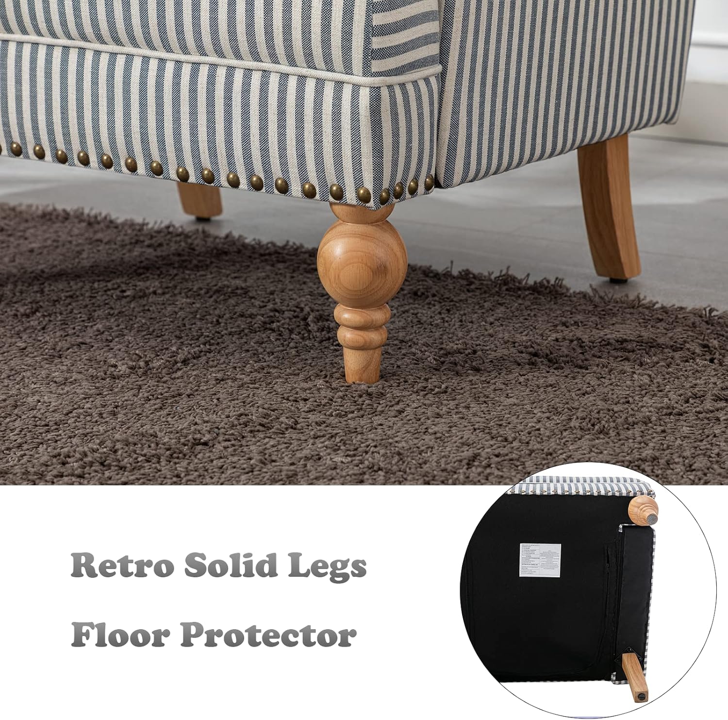 - CURVED ARMREST - The armrests are designed as round shap, which will be much comfier to relax your arms and shoulders on them. The bronze nailheads trim makes it more unique, it will be a siutable single sofa in your room