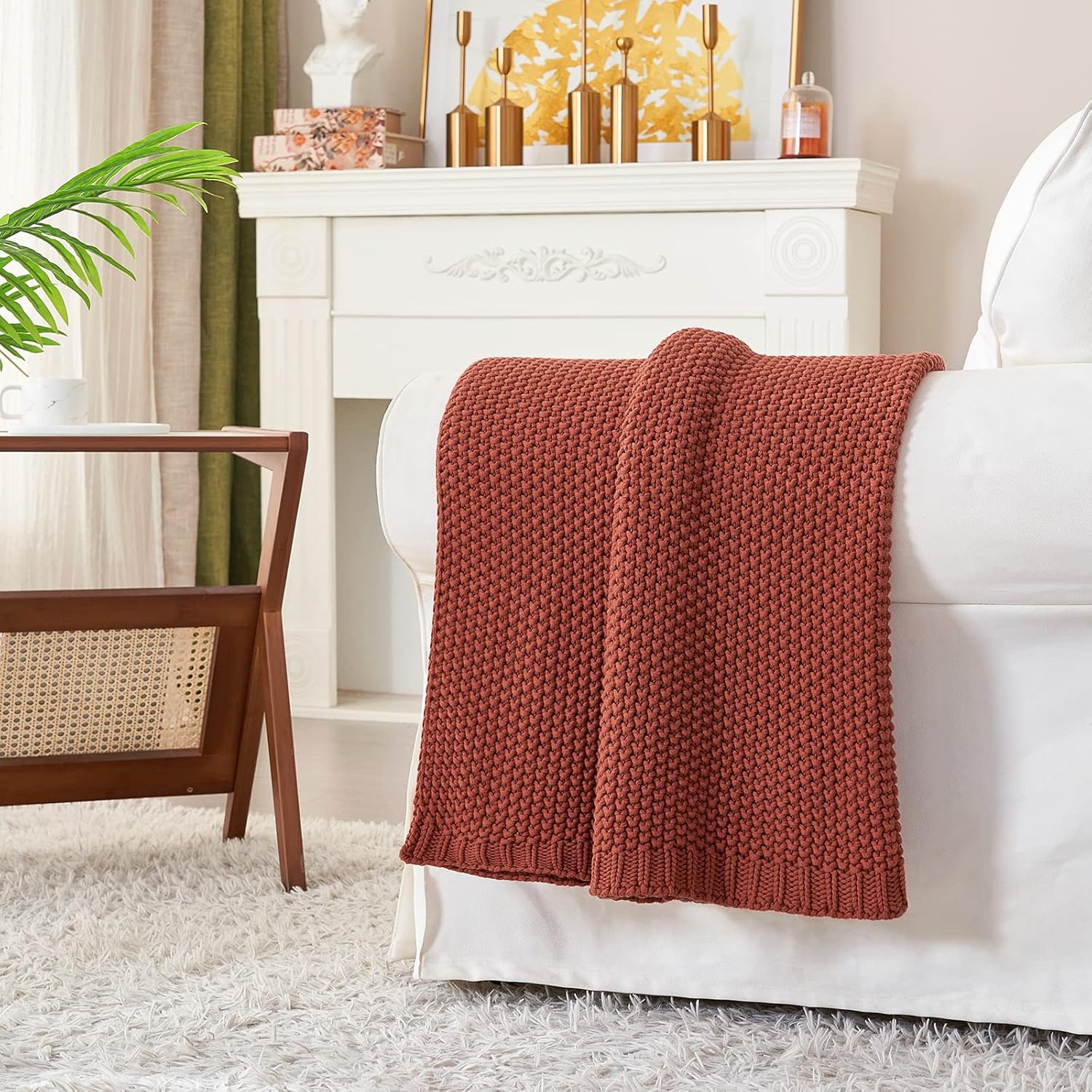 - MODERN + CLASSIC: Woven into a luxurious chunky knit, 100% natural cotton yarn fibers in rust support a neutral finish that complements farmhouse chic home décor, shabby chic home décor & more.