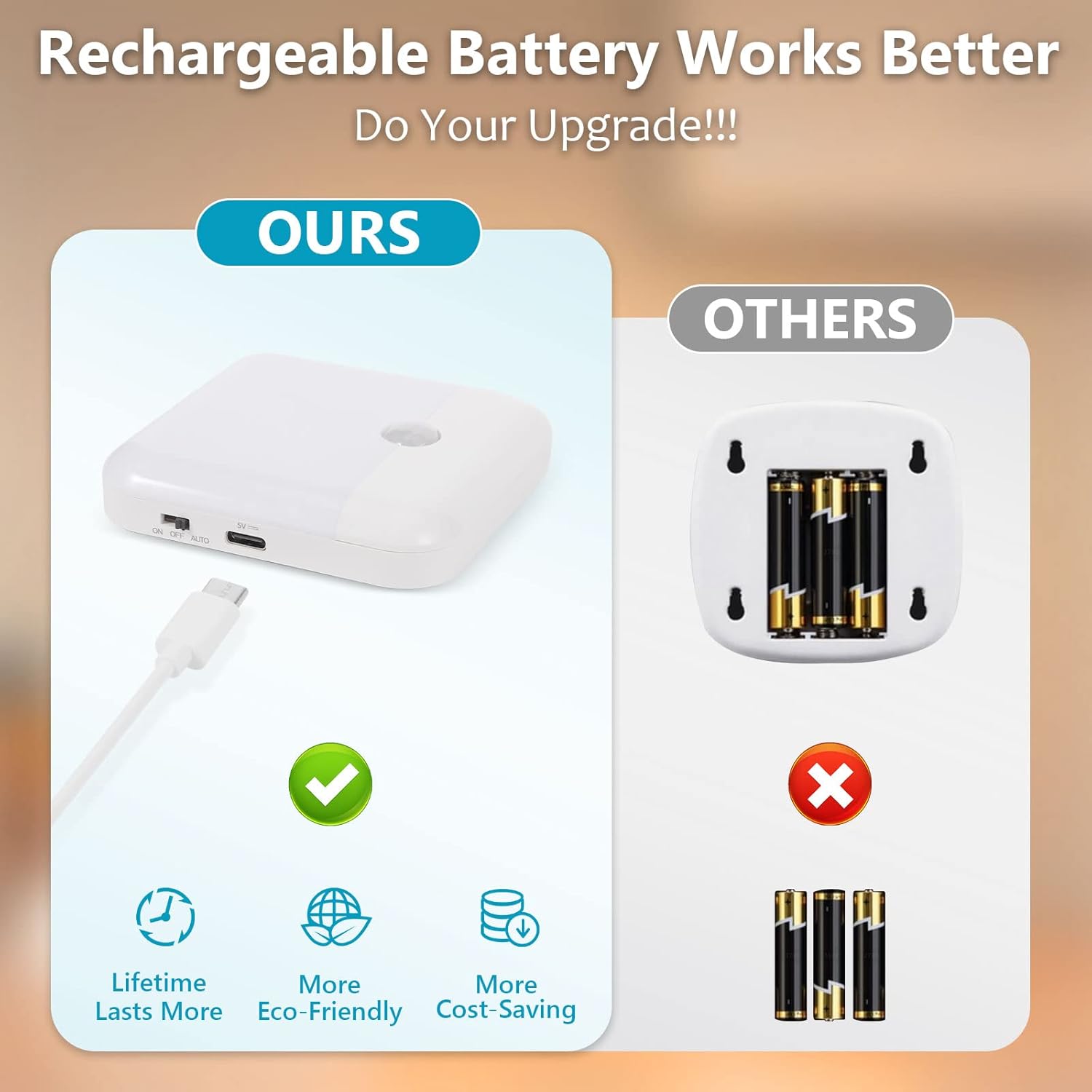 - Rechargeable Night Light: Featuring advanced rechargeable battery technology, this motion sensor night light lasts up to 180 days on a single charge. In comparison to traditional battery powered night lights, it offers greater longevity, energy efficiency, and eco-friendliness. Say goodbye to disposing of old batteries!
