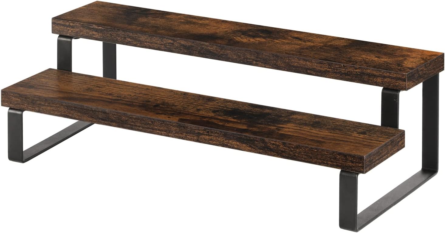 - Quick Setup & Easy Cleaning: You can have this 2-tier display riser stand assembled in 10 minutes with detailed instructions and tools. The wooden surface is waterproof and dust-free, a damp cloth could keep the counter shelf clean. (Assembly tools and accessories are included in the package)