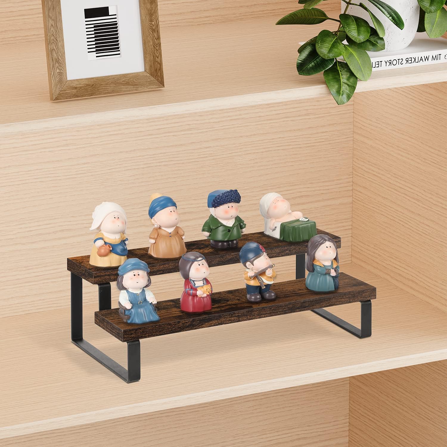 - Convenient Design: The stepped design makes efficient use of your counter space. This wooden display riser is a great idea for displaying toy figurines in cabinets, celebrating party desserts, and cosmetics on the dresser. The raised tiers help to create an eye-catching feature for your items.