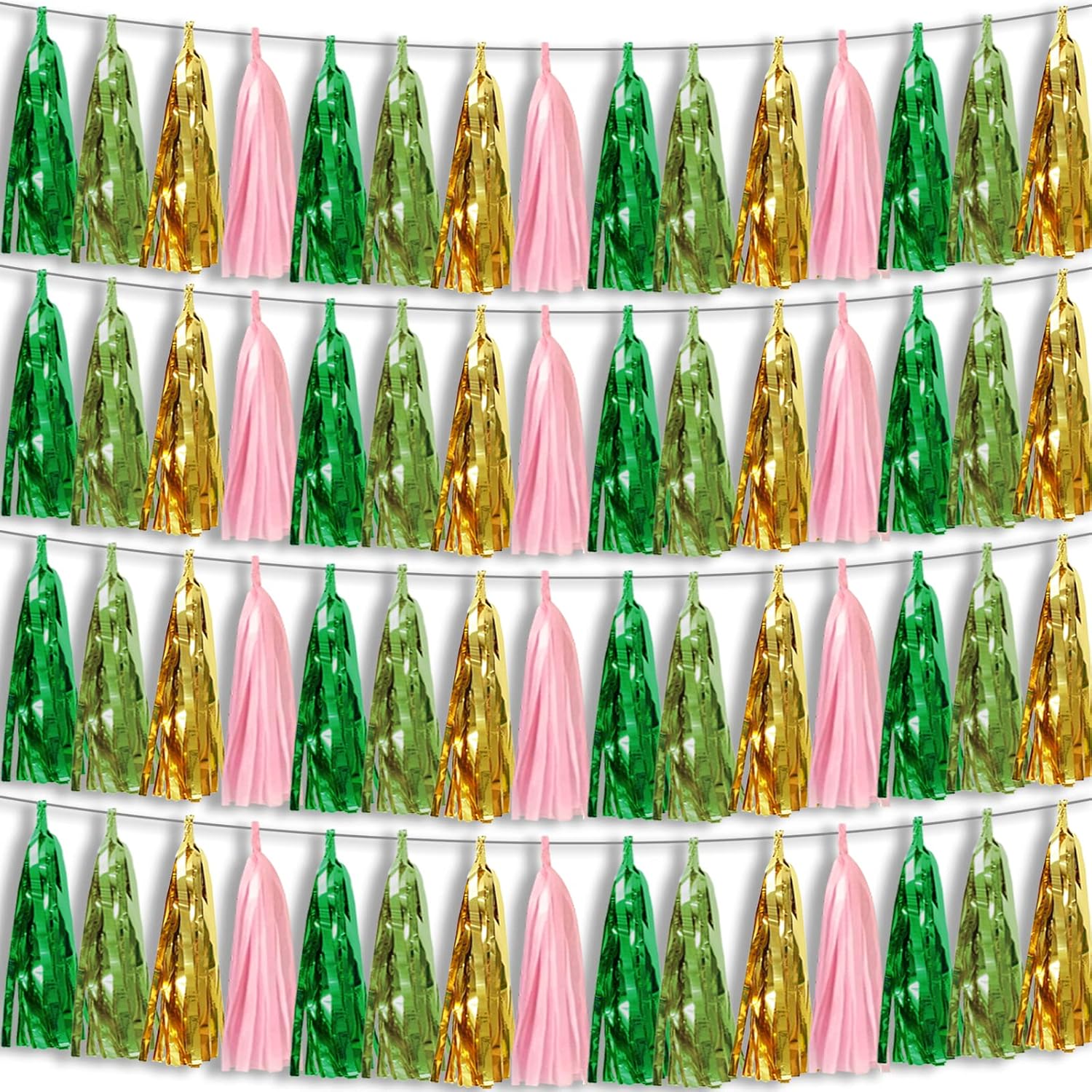 4P Sage-Green Pink-Gold Foil Fringe Metallic Tassel Garland, Tassels Banner Streamers for Parade Floats, Bachelorette, Wedding, Birthday, Halloween, Christmas, Bridal/Baby Shower Party Decorations