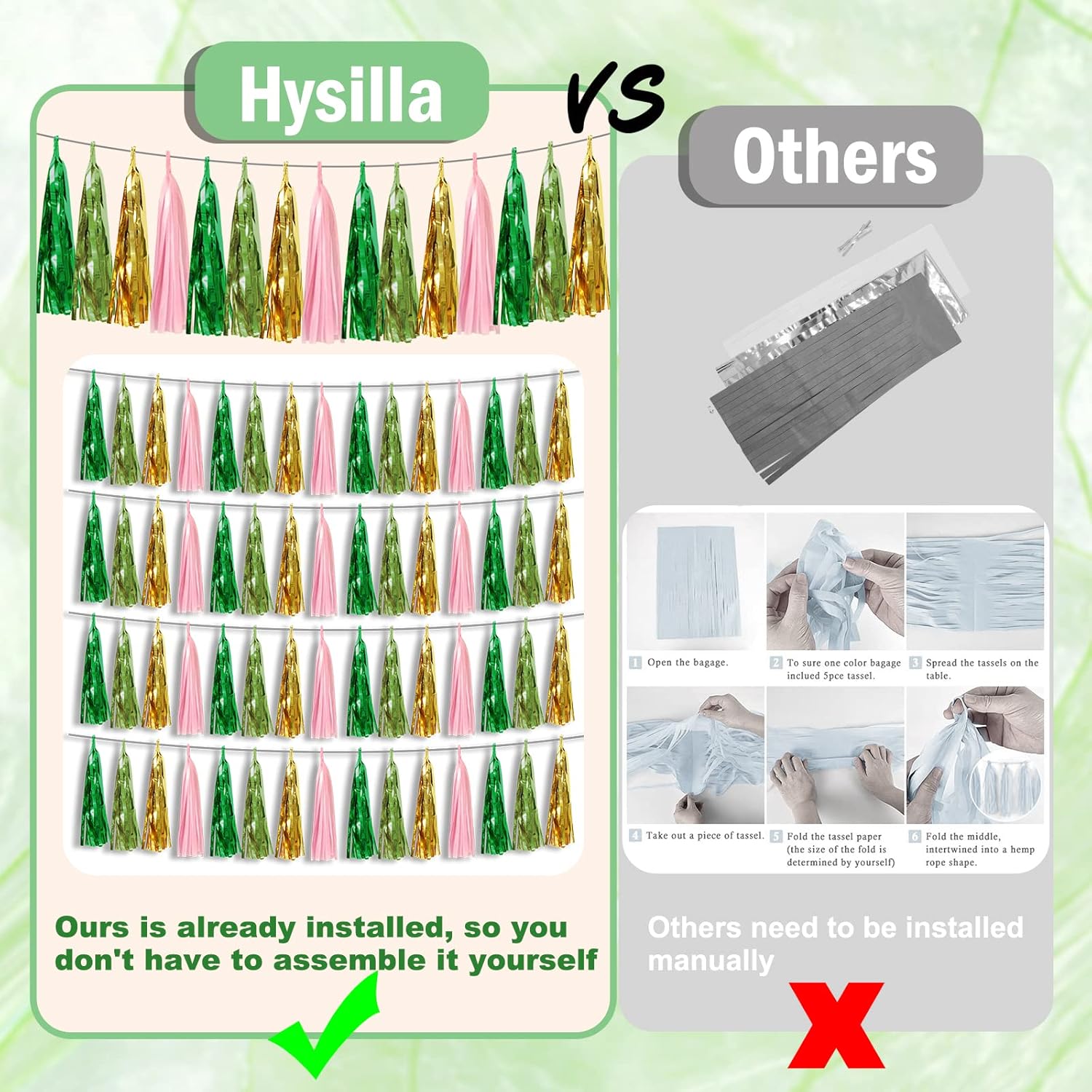 - 【Sage Green Pink Gold Party Supplies Set】: The total length of the sage green pink gold birthday tassels banner is 26.2 feet, divided into 4 strips, each 6.5 feet long. Each banner contains 15 tassels, and each tassel measures 14 inches, for birthday decorations many occasions, and so on