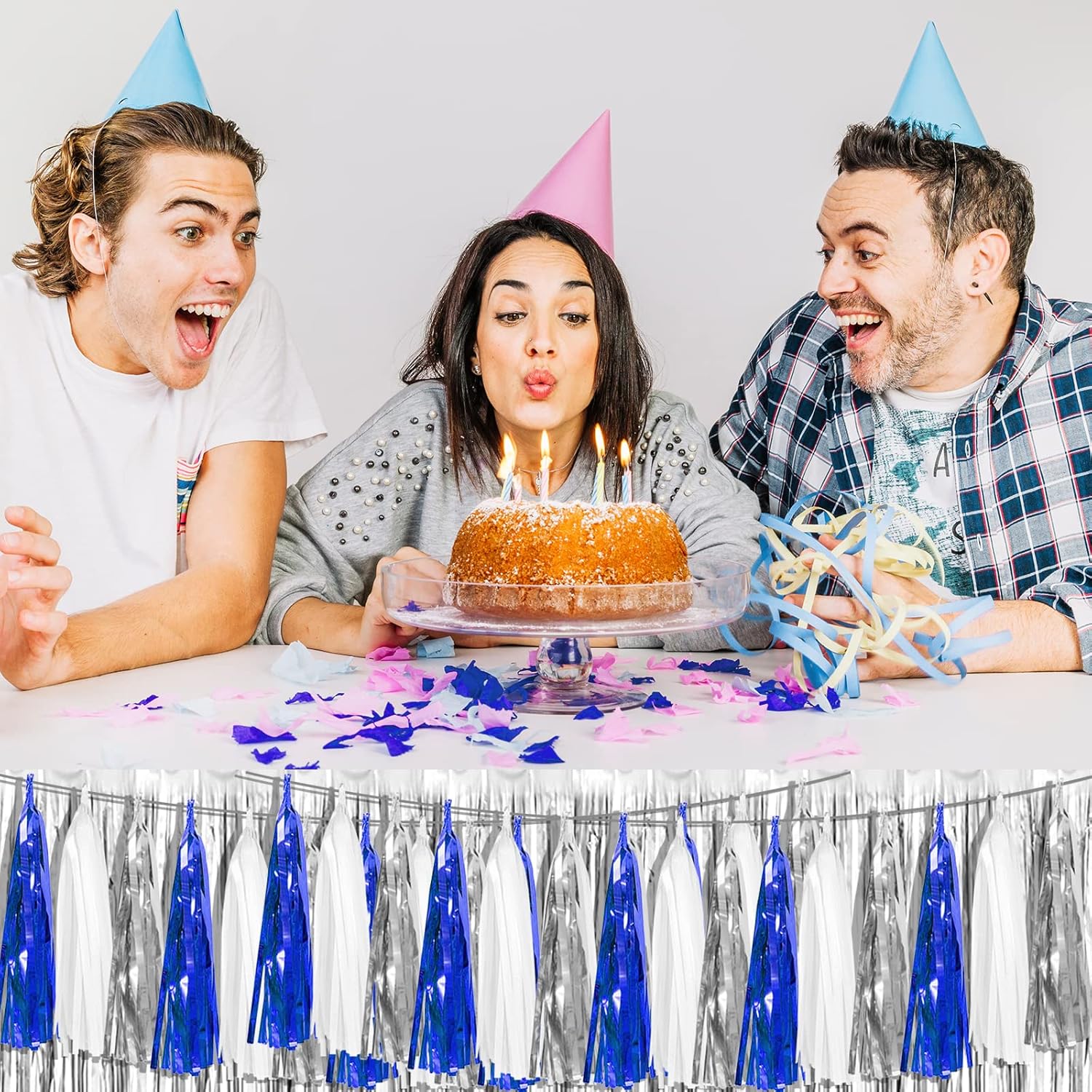 - 【Perfect Party Decoration】The navy blue white silver tinsel garlands are designed in a metallic Fringe, bright, and beautiful, at the same time, they shine in the sun, and these gorgeous tassel garlands create a wonderful backdrop or centerpiece for your party space. and bring you, your family, and your friend's good Visual effects. your party many emotional and touching moments where a lot of pictures will be taken and everybody will have a wonderful time together.