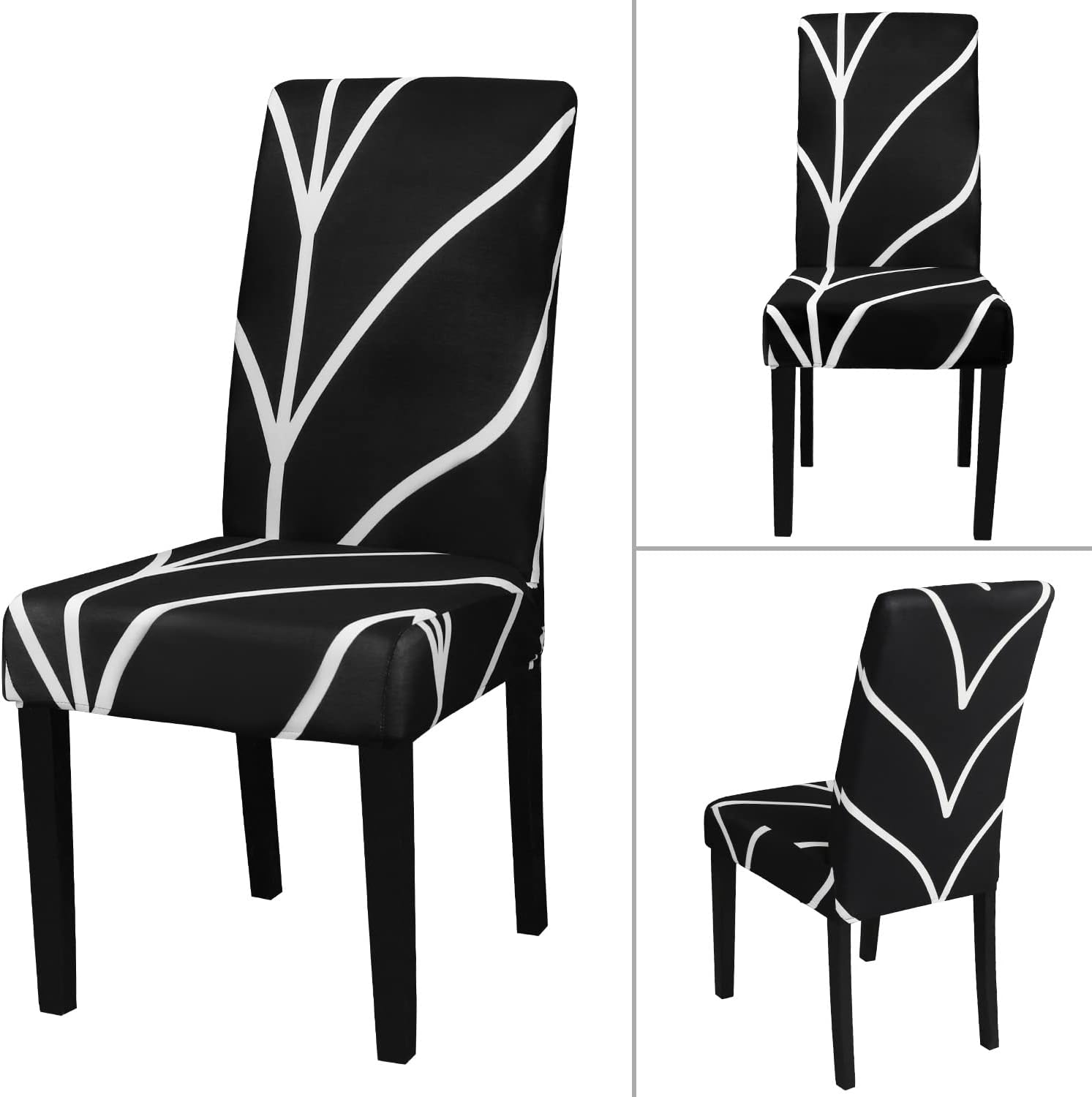 JQinHome Black Chair Covers for Dining Room Set of 6, High Stretch Removable Washable Parsons Chair Slipcover for Home Party Hotel Wedding Ceremony (6PCS, Geometric)