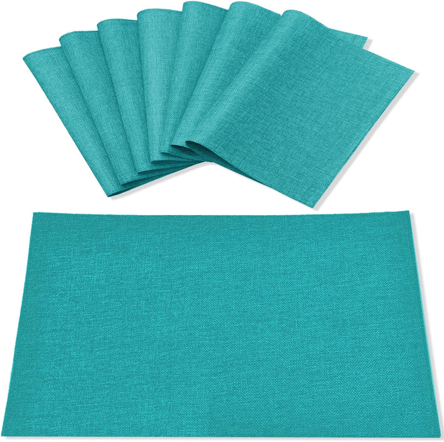 Cloth Placemats Set of 8, Linen Type Fabric Placemats Machine Washable Heat Resistant Placemats Wrinkle Free Thick Polyester Kitchen Place Mats for Dining Table (Teal Blue)